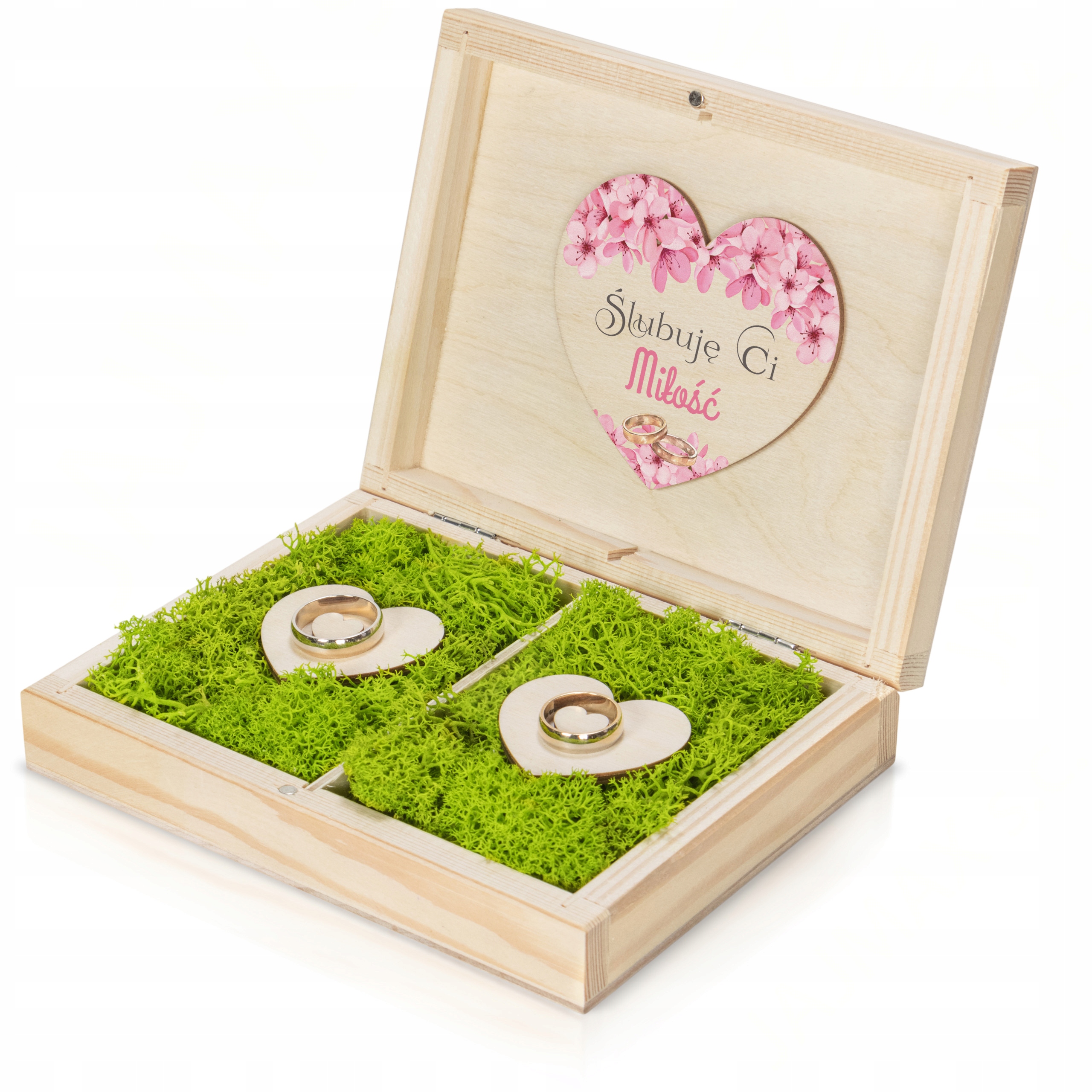 Унікальний принт із кількома візерунками на вибір на зовнішній стороні та всередині серця створює унікальне ціле. Ваша відданість робить скриньку для каблучок буквально вашою.