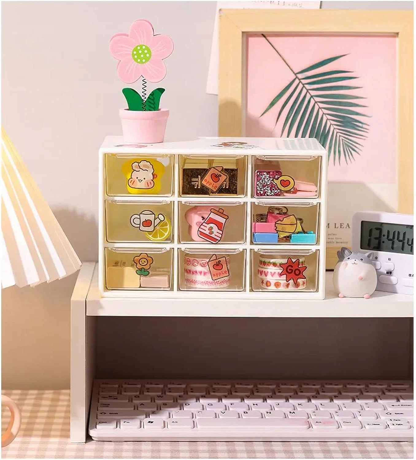 - Ретельна конструкція: міні -ящики для зберігання виготовлені з прозорого пластику, тому ви можете швидше і точно вибрати необхідні предмети. 9 ящиків сортуються таким чином, щоб різні типи предметів можна було розмістити в окремих ящиках, щоб ваш робочий стіл актуальний та чистий