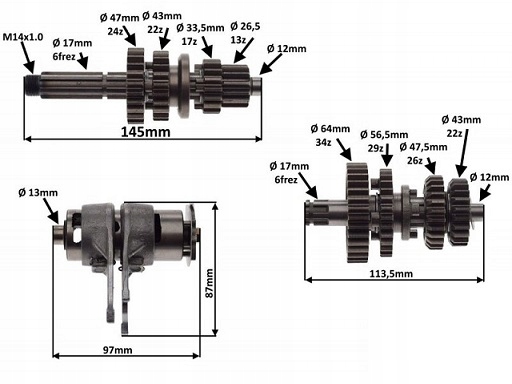 КОМПЛЕКТ КОРОБКИ ПЕРЕДАЧ JUNAK CROSS ENGINE ZS154FMI-2