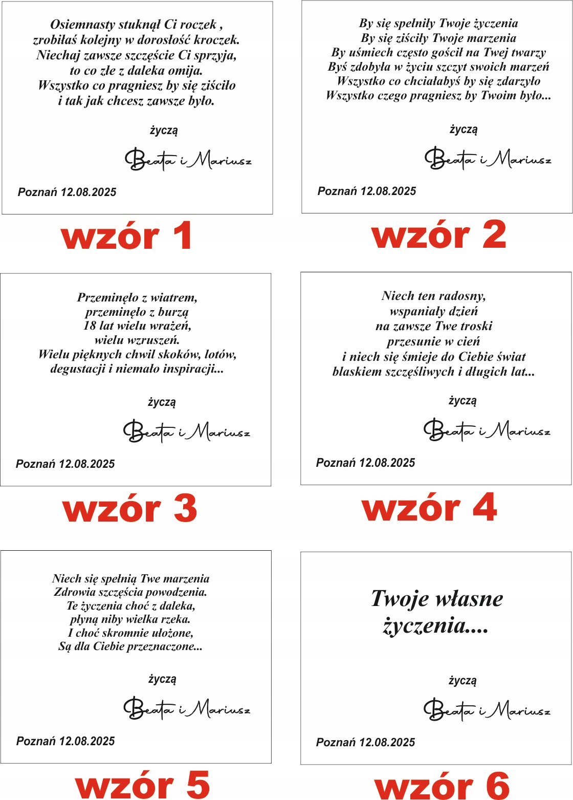 1⃣ Виберіть візерунок - Дайте назву Ювілей, який відзначає день народження, коробку №, і побажання, дата, місце і від кого побажання