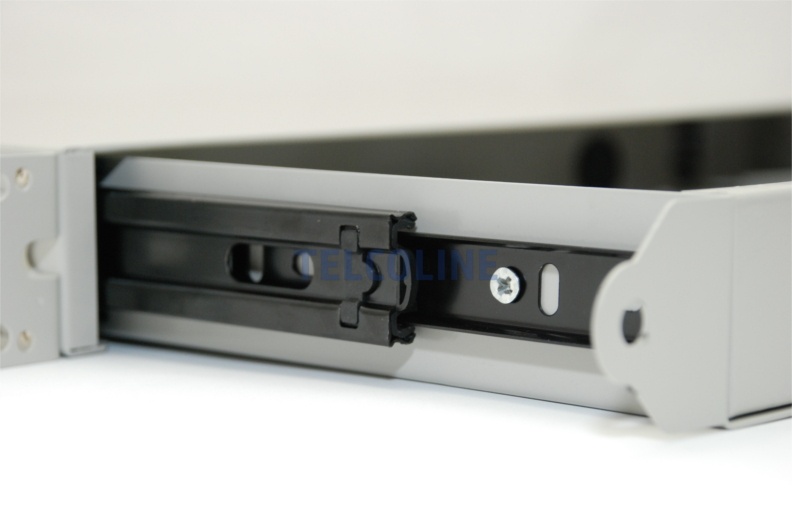 Стійка призначена для установки в телекомунікаційні шафи 19 дюймів (стоячі, підвісні). Розподільна рама дозволяє встановити 24 адаптери SC Simplex або LC Duplex. Оснащений кабельним органайзером і оптоволоконним лотком. На задній стінці є 2 отвори, забиті гумовими ущільнювачами, і 2 отвори під кабельні вводи PG13.5 (регульовані по висоті), призначені для входу і виходу волоконно-оптичних кабелів. Розподільна коробка оснащена висувним ящиком, встановленим на кулькових напрямних, що забезпечує легкий доступ до внутрішньої частини або вилучення з корпусу. Завдяки використанню фіксаторів ми можемо заблокувати висувну шухляду.