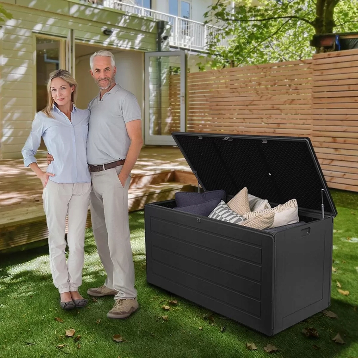 ✅ Ємність 680 літрів – забезпечує багато місця для зберігання подушок, іграшок, садового інструменту та інших аксесуарів.