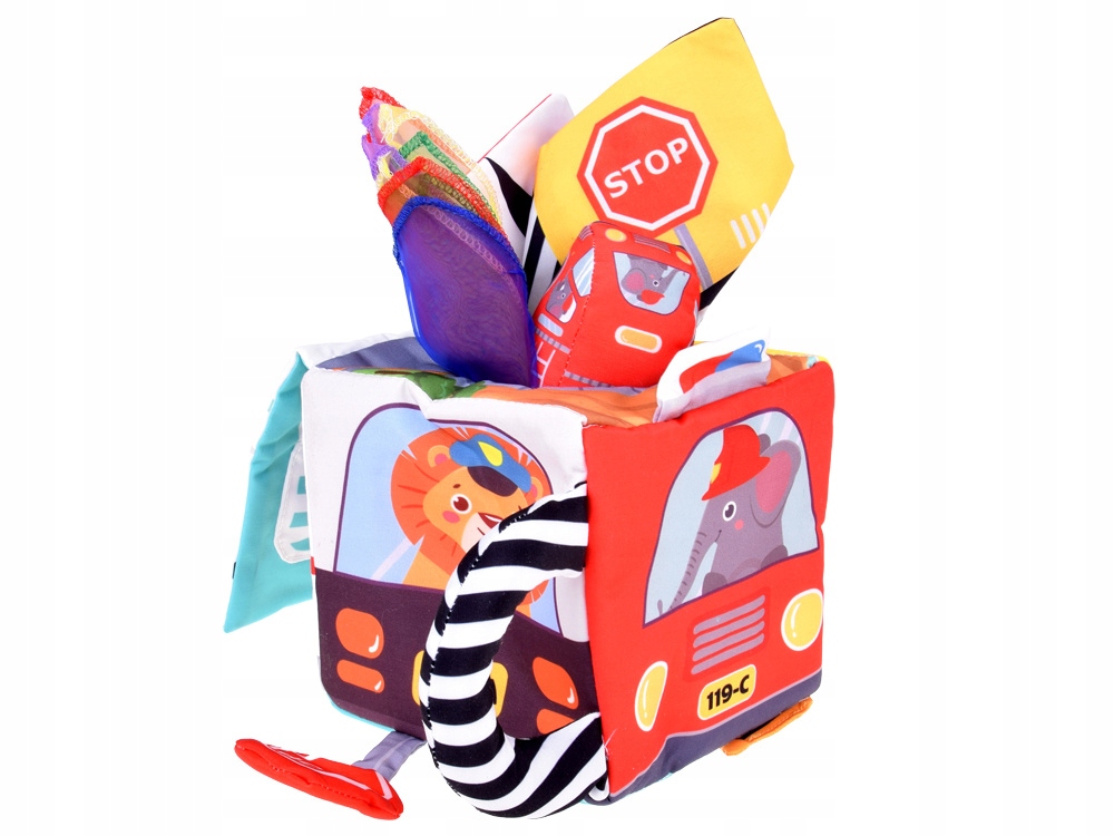 Це більше, ніж просто кубик - це інструмент, який буквально росте разом з дитиною. Достаток кольорів, різноманітність форм і прихованих сюрпризів постійно привертають погляд і спонукають до дослідження. Малюк відкриває для себе нові текстури, дістає різнокольорові шарфи та м'ячики та знайомиться із захоплюючим світом транспорту та дорожніх знаків.