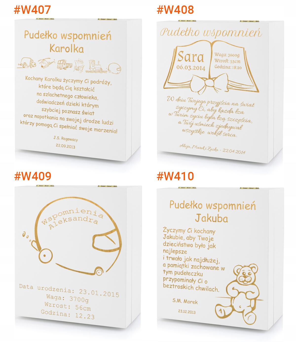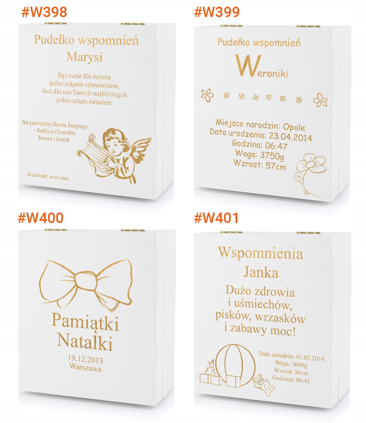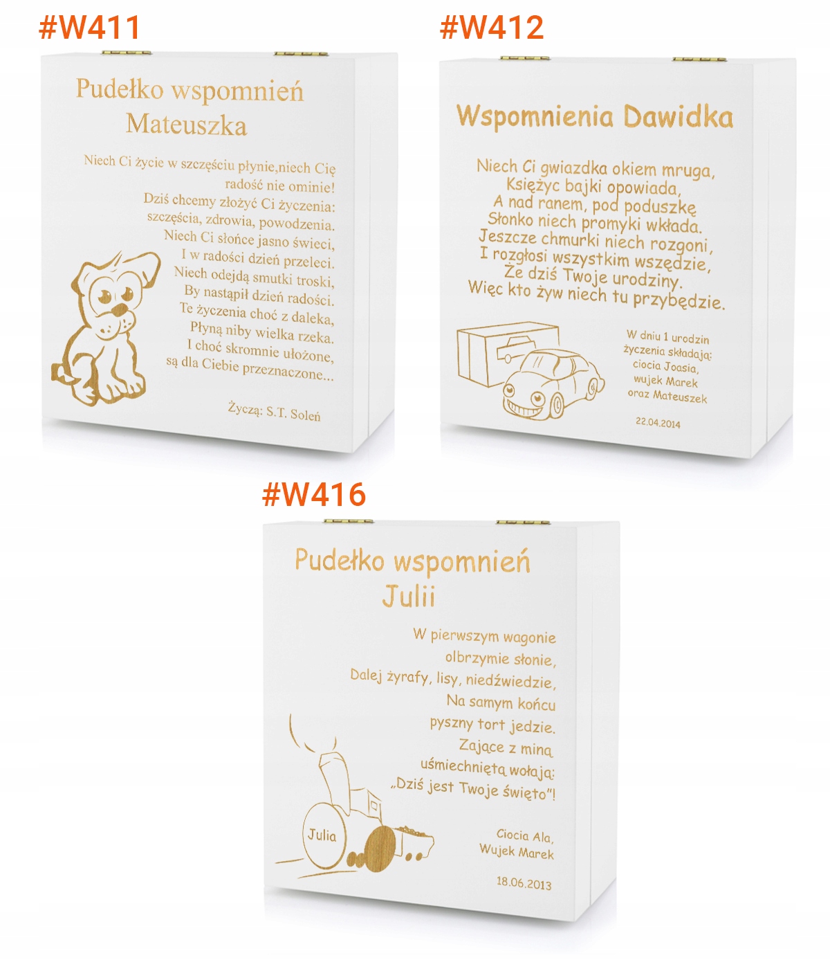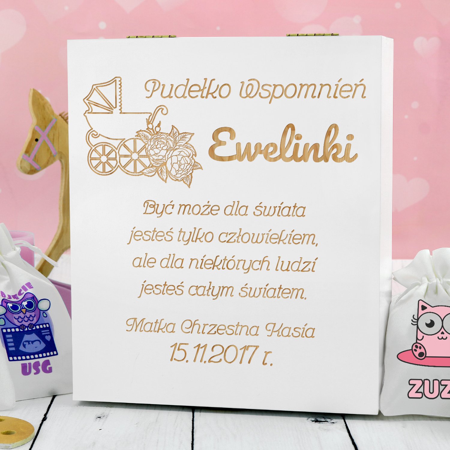Зробіть оригінальний подарунок хлопчикові на Святе Хрещення або перший день народження. Скринька спогадів виготовлена повністю з дерева та пофарбована білою фарбою, а вигравірувані побажання зроблять скриньку унікальною. У коробці 6 атласних мішечків з надрукованими малюнками, наповнені вони принесуть тільки хороші моменти, до яких батьки будуть повертатися.