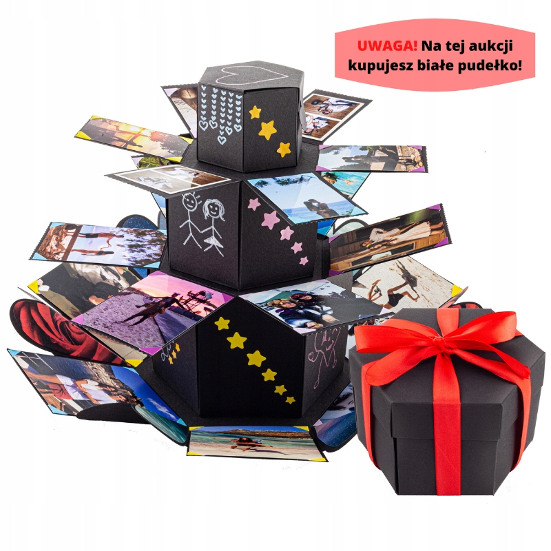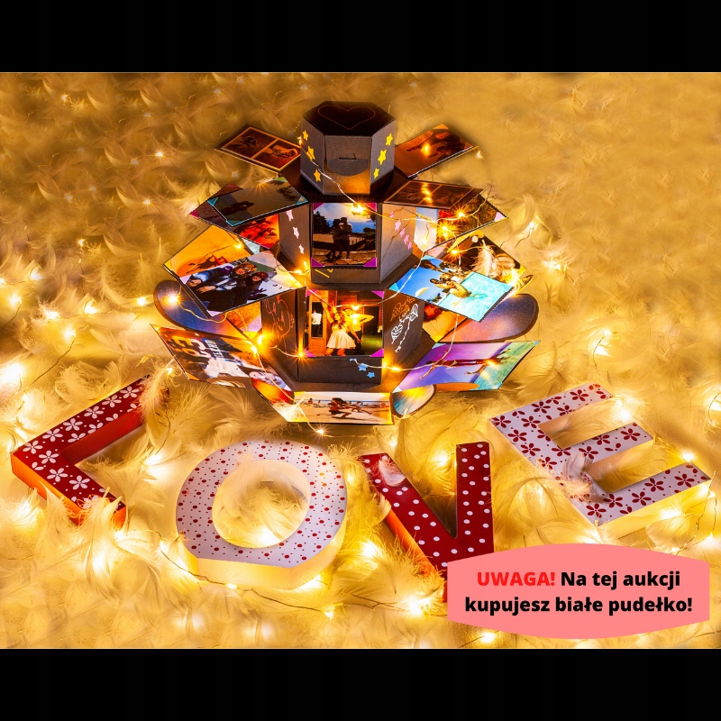 Для декорування не потрібно нічого купувати – усе входить у комплект. Просто роздрукуйте свої фотографії, виріжте їх у відповідний формат і вставте в коробку. Створіть власну коробку та здивуйте надзвичайним подарунком!