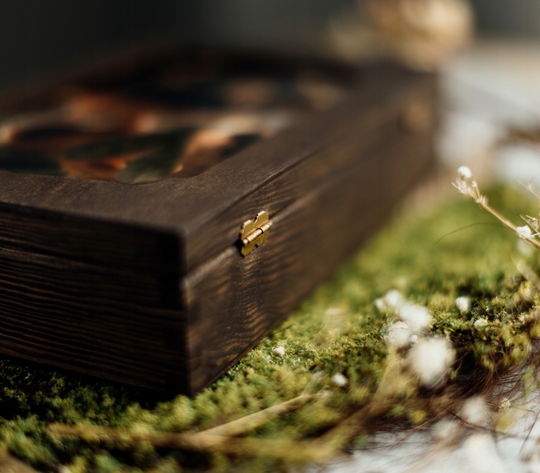 Дерев'яна коробка для фотографій 15х23 і 15х21, закривається на магніт, з віконцем з акрилового скла.