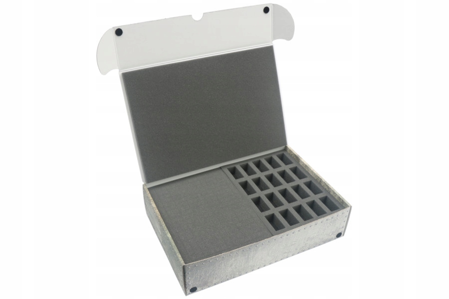 - піна для 20 моделей з відсіками розміром 25 мм х 50 мм х 27 мм, забезпечуючи безпечне пристосування для менших статуетків.