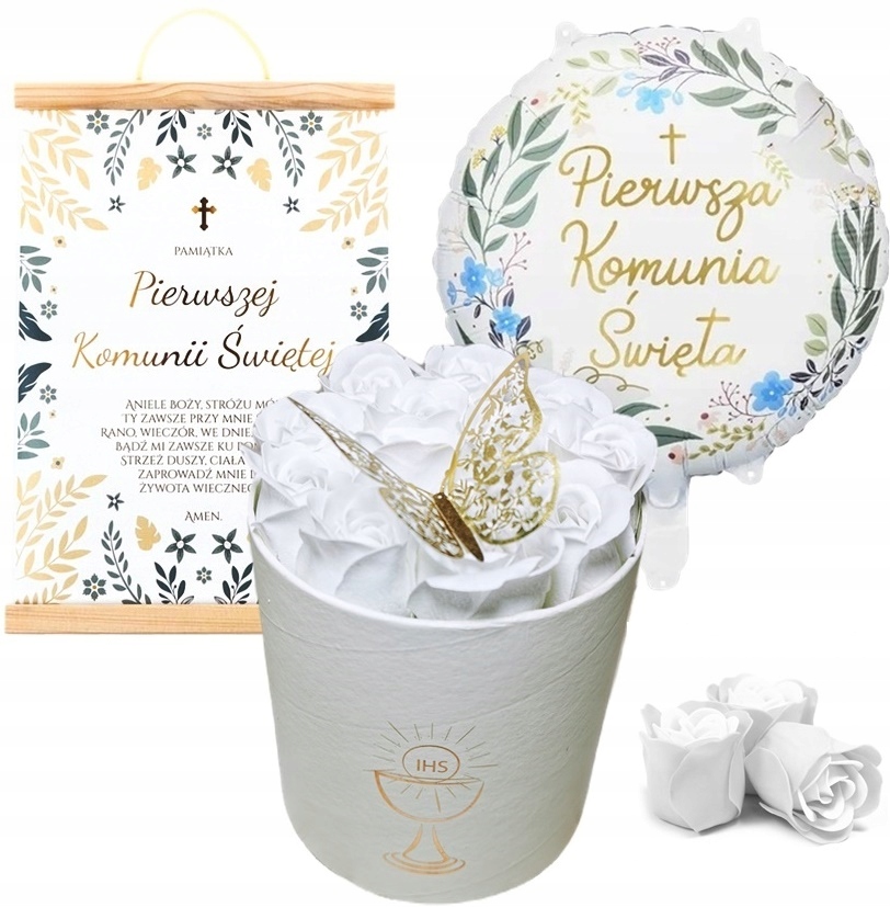 Коробка з квітами, Диплом, Повітряна куля ПОДАРУНОК ДЛЯ ПРИЧАСТЯ IHS