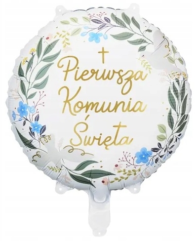 Кругла фольгована куля з принтом «Перше Святе Причастя». Для надування повітрям або гелієм.