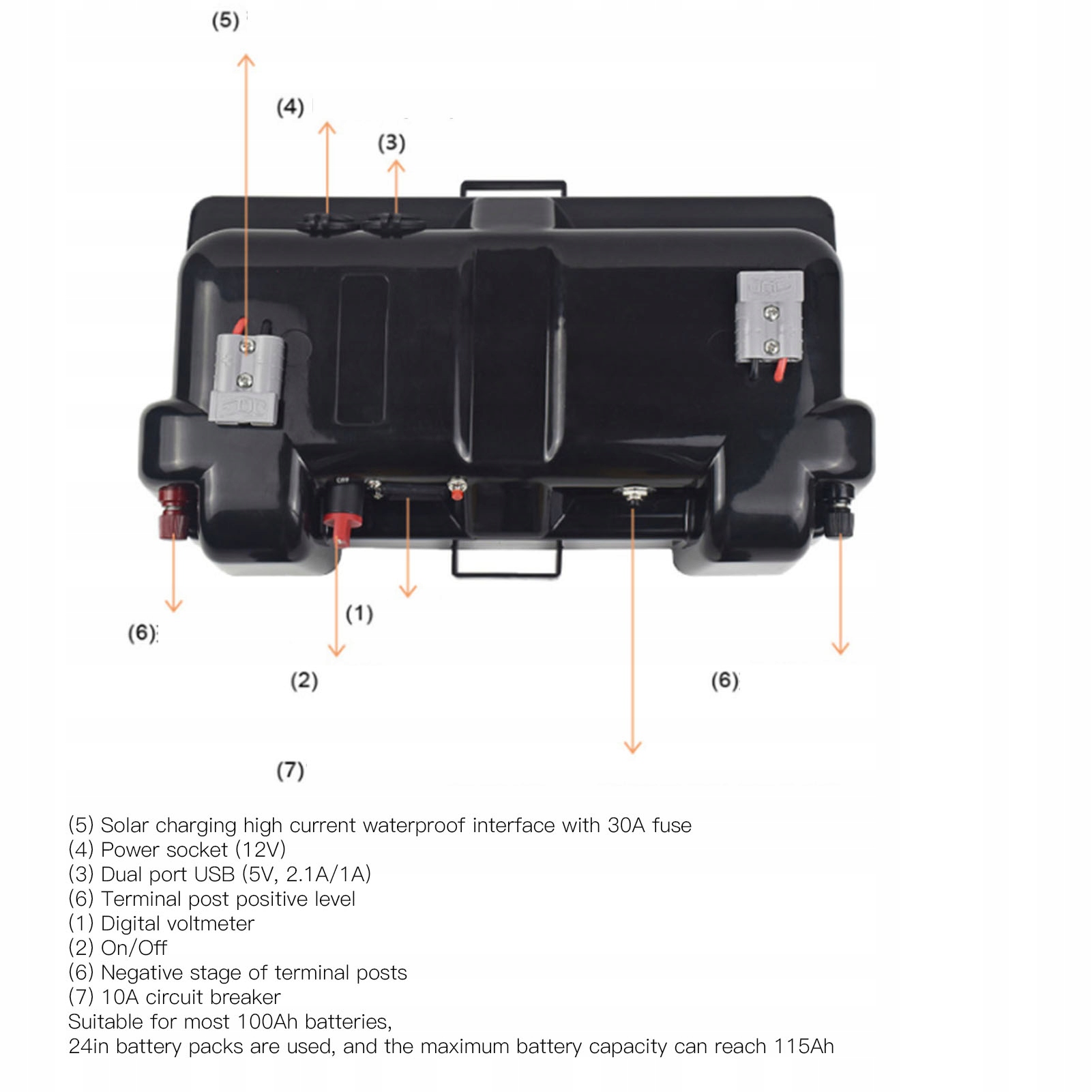 - підходить для більшості акумуляторів 100Ah, 24 -дюймові акумуляторні пакети досягають 115AH