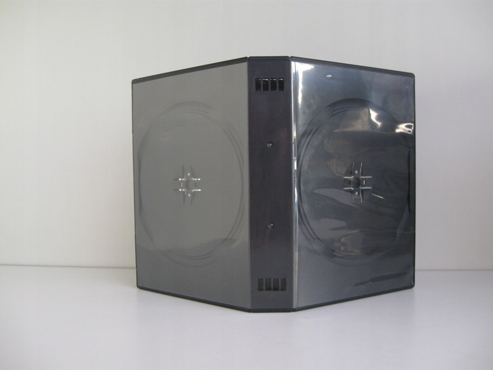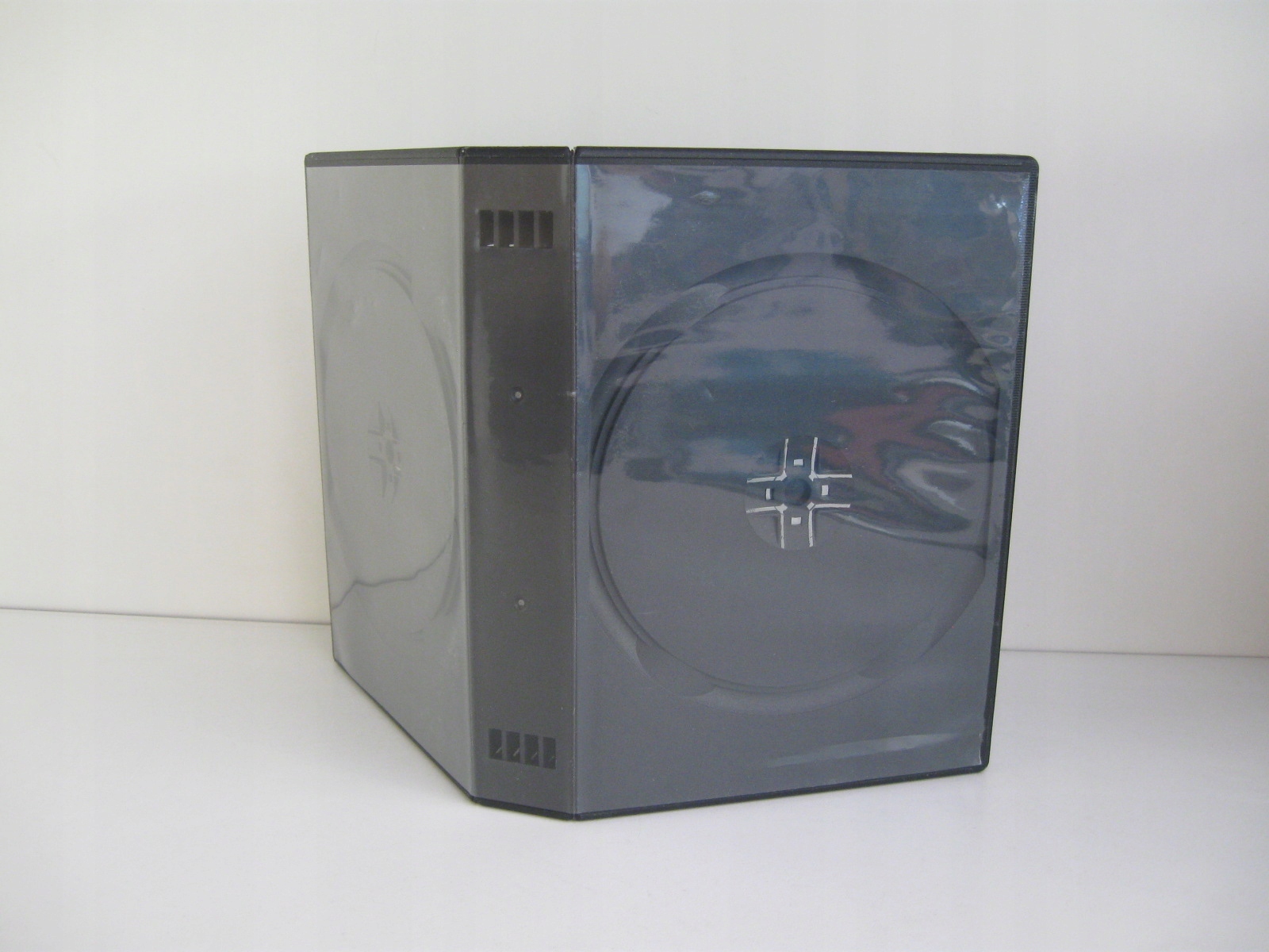 Чорна упаковка для 10 DVD-дисків виготовлена з якісного матеріалу з високою стійкістю до подряпин. Упаковка має хороші гачки, які ідеально тримають диск.