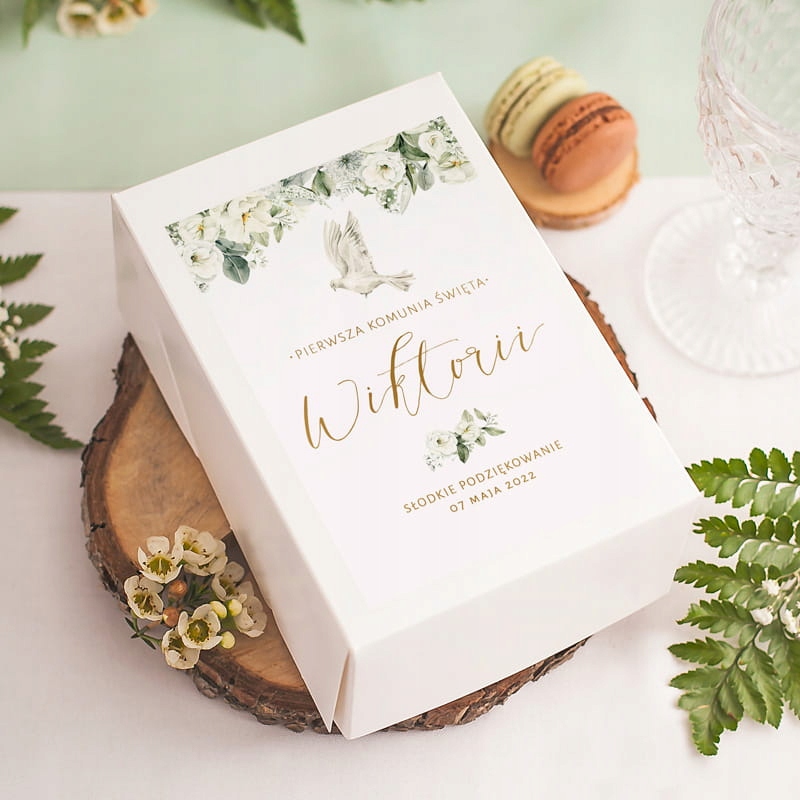 КОРОБКИ для торта Причастя Білі Квіти + НАЗВА