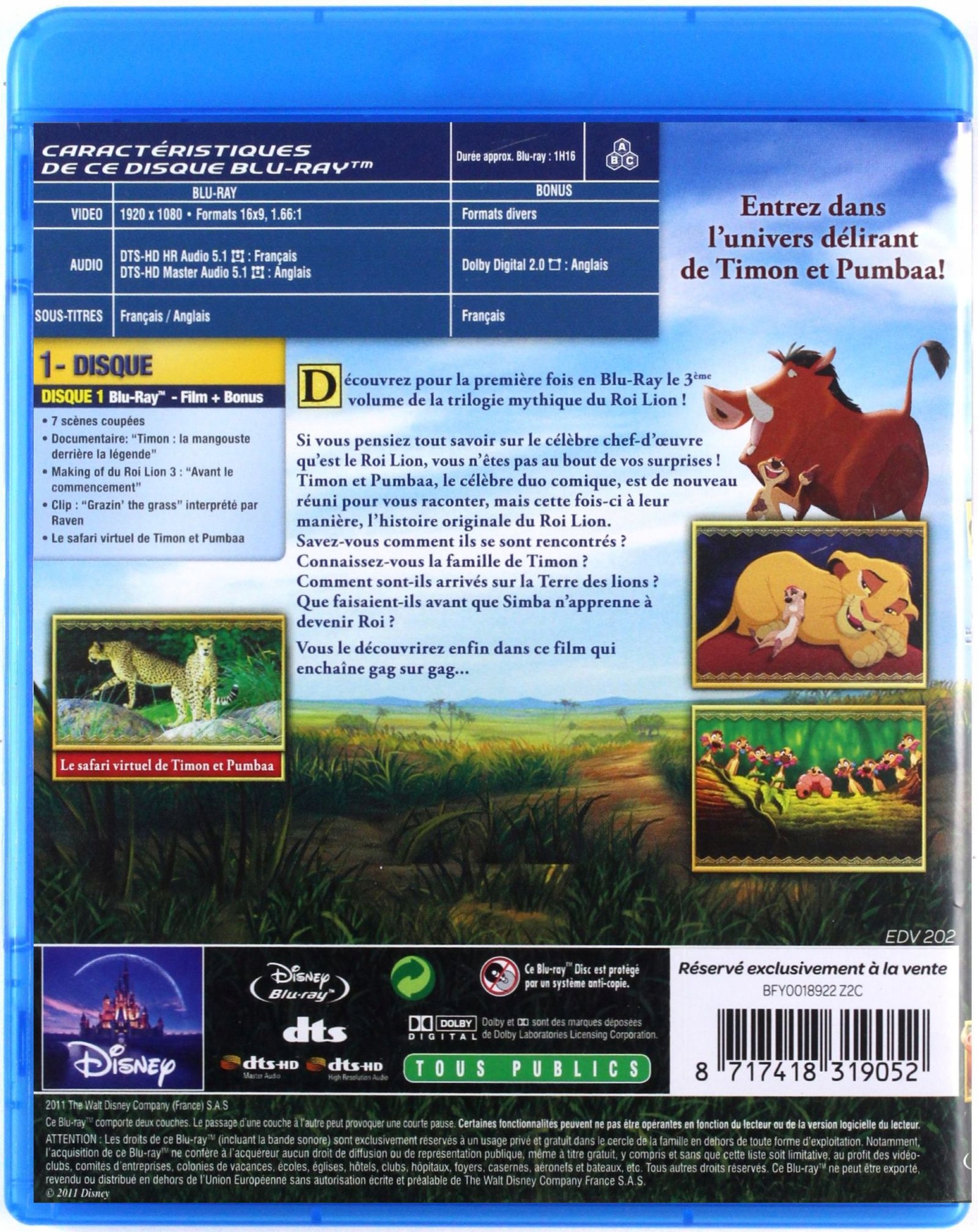 Третя частина епічного шедевра Діснея перенесе вас далеко в минуле, у країну, де панують сміх, пригоди та веселощі! Дізнайтеся історію ваших улюблених персонажів з унікальної божевільної точки зору Тімона і Пумби. Дізнайтеся, звідки вони походять, дізнайтеся, як вони допомогли Сімбі врятувати Серенгеті, і дізнайтеся багато інших таємниць королівства левів.