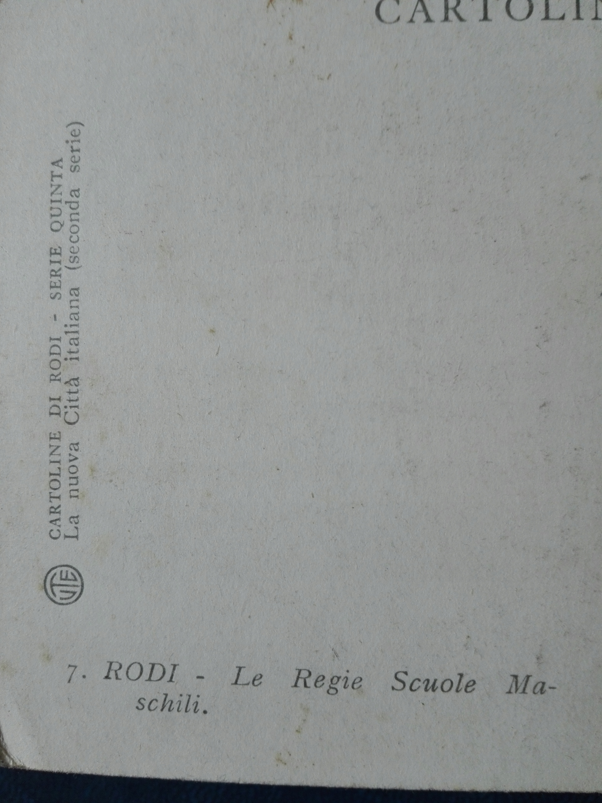 - Листівка із зображенням школи та площі на острові Родес, приблизно 1930 рік. На той час Родос належав Італії.