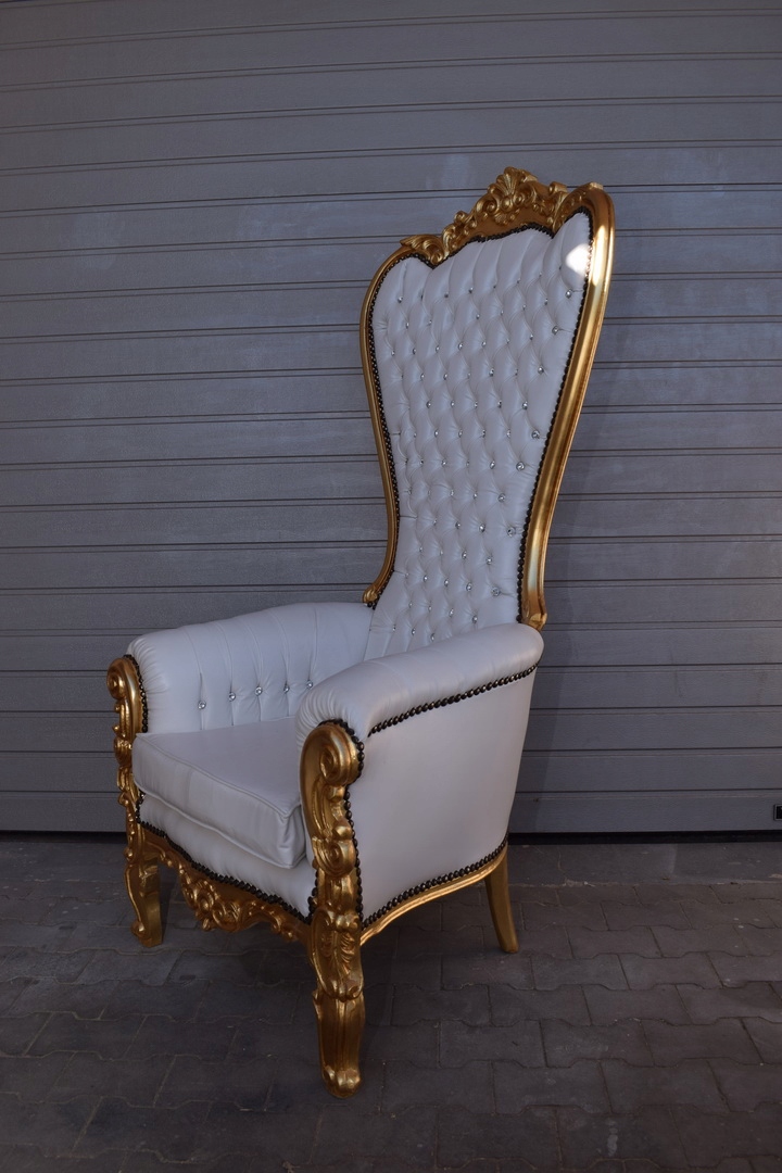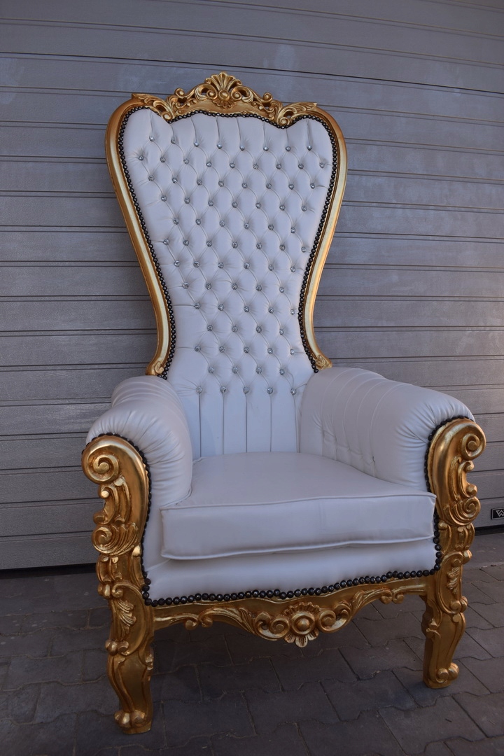 Королівське бароко крісло на трон - біле і золоте - фотосесія весільного причастя