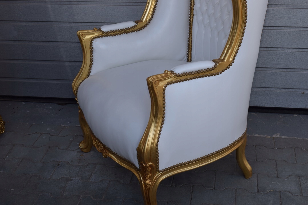 Королівське бароко крісло на трон - біле і золоте - фотосесія весільного причастя