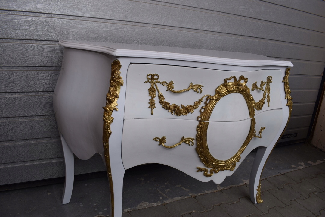 Королівський білий комод - Арт-нуво - Вінтажна гламурна шафа - Латунна фурнітура