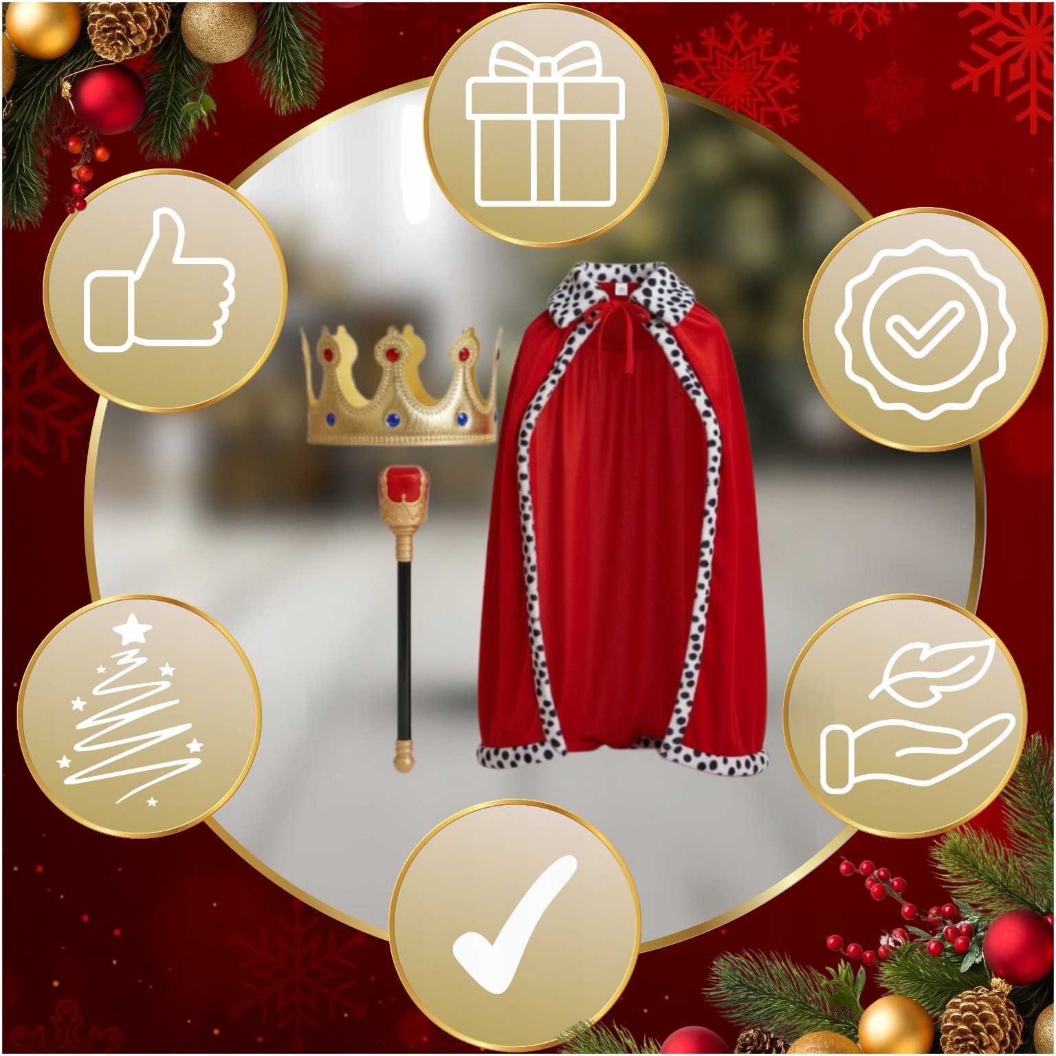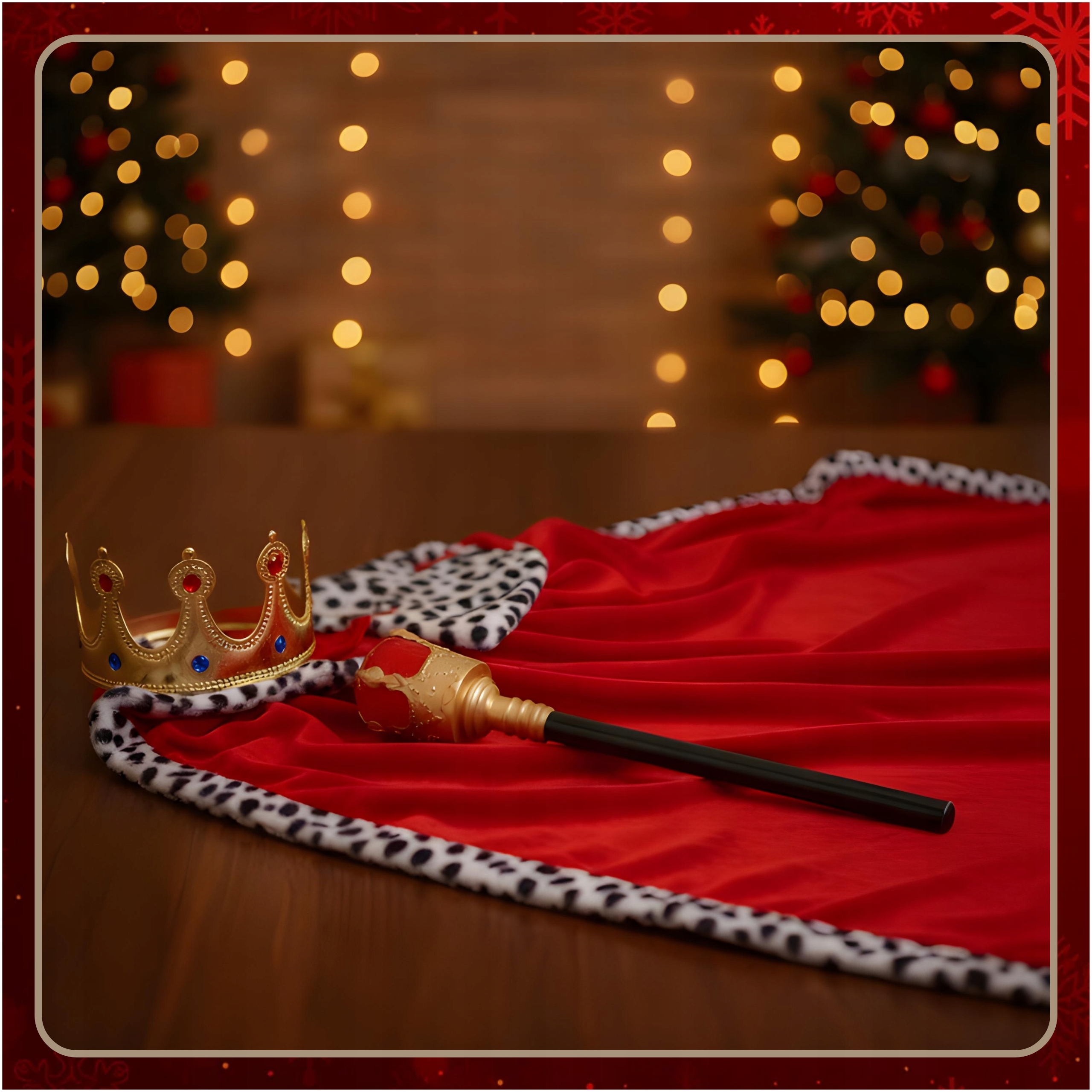 ✅ Багатий зовнішній вигляд ✅ Насичений червоний колір ✅ Легка та зручна накидка ✅ Суцільна корона ✅ Вражаючий скіпетр ✅ Особливості: ідеально підходить для балів і виступів