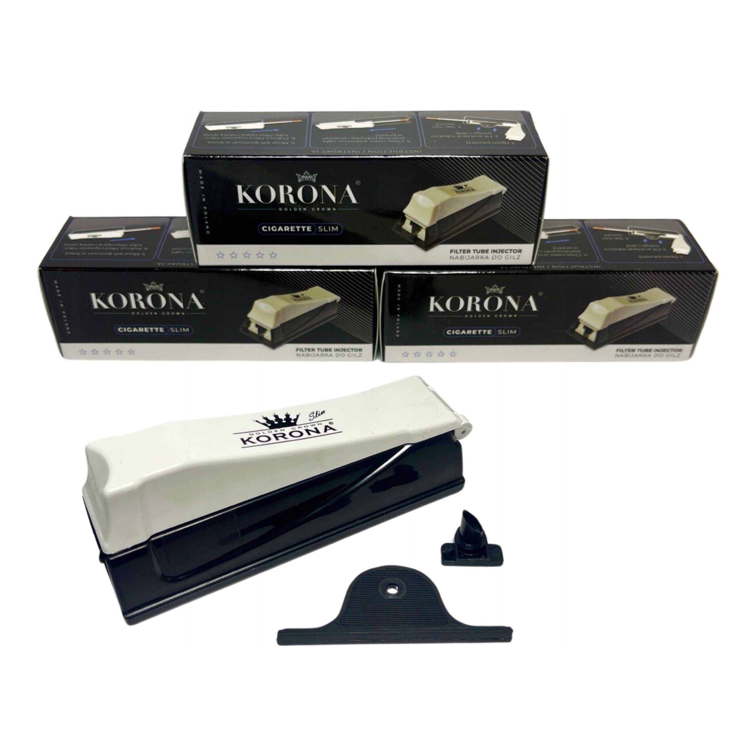 З ручним наповнювачем KORONA SLIM приготування власних сигарет стає легшим, ніж будь-коли. Завдяки цьому кожен любитель самостійного приготування сигарет може насолоджуватися відмінною якістю і точністю виконання, незалежно від місця і часу. Ідеальний вибір для тих, хто цінує незалежність і високу якість своїх сигарет.