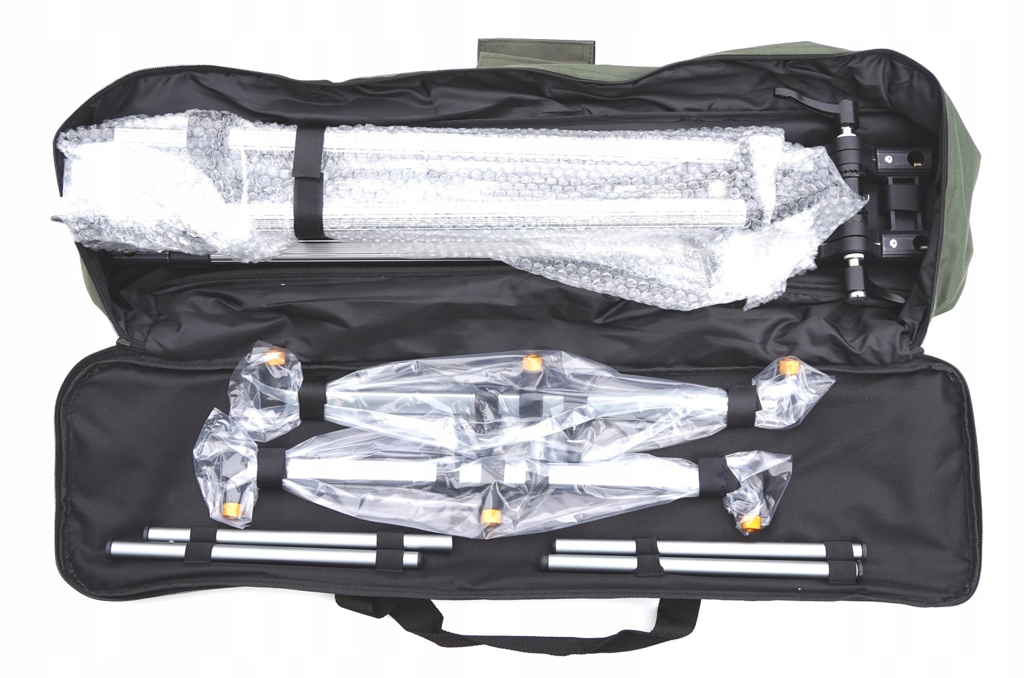 - Налаштування вудилища можна регулюватися декількома способами, в тому числі шляхом регулювання стрижнів, довжини ніжок і їх відстані, що дозволяє адаптуватися до будь-яких умов на рибальському угідді.