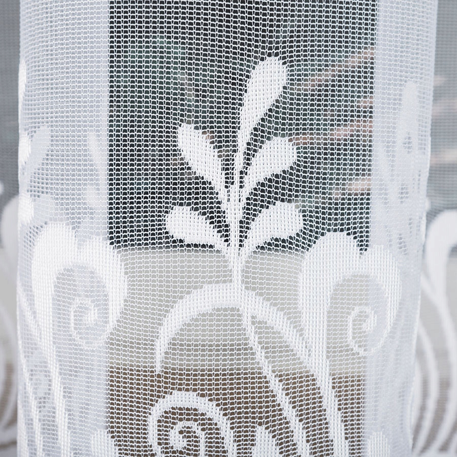 Предмет продажу жаккардова штора з візерунком з широких смуг листя. Виготовлена з якісної пряжі з блиском. Добре пропускає світло і не вимагає прасування. Штора вирізана з бруса, продається метраж.