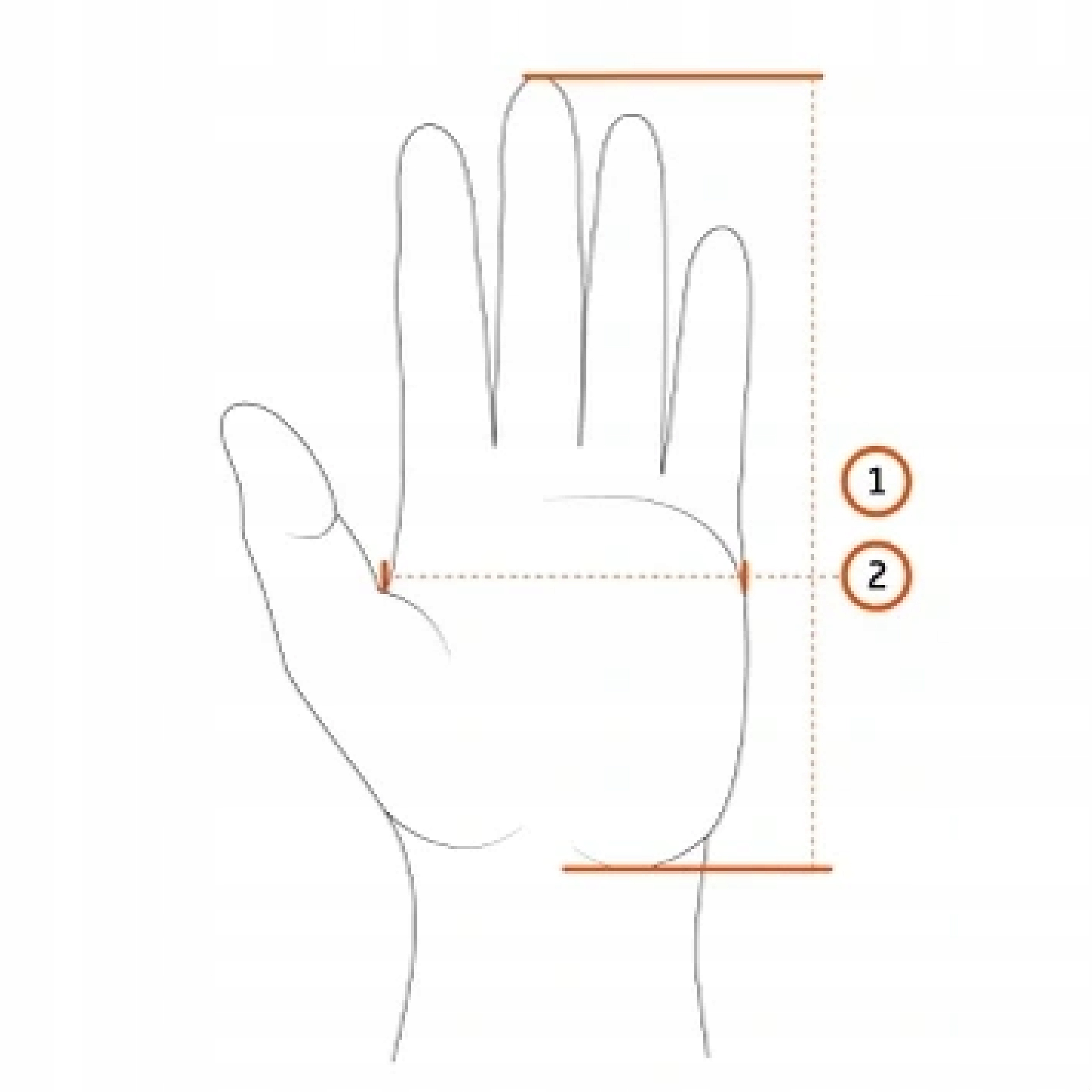 вимірюйте довжину та окружність вашої руки, а потім порівняйте з розмірами нижче.