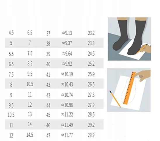 - Щоб отримати специфікацію розміру, прочитайте розмір ваших звичайних кросівок.
