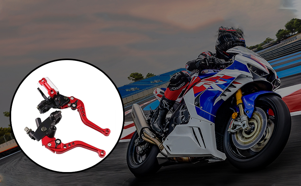 - 【Універсальний мотоциклетний важіль зчеплення】Цей універсальний важіль зчеплення головного гальмівного циліндра мотоцикла 7/8" 22 мм підходить для системи зчеплення більшості мотоциклів, сумісний із Harley Yamaha Honda Kawasaki Suzuki. Він може гарантувати точну роботу та чутливість після встановлення, забезпечення безпечної їзди.
