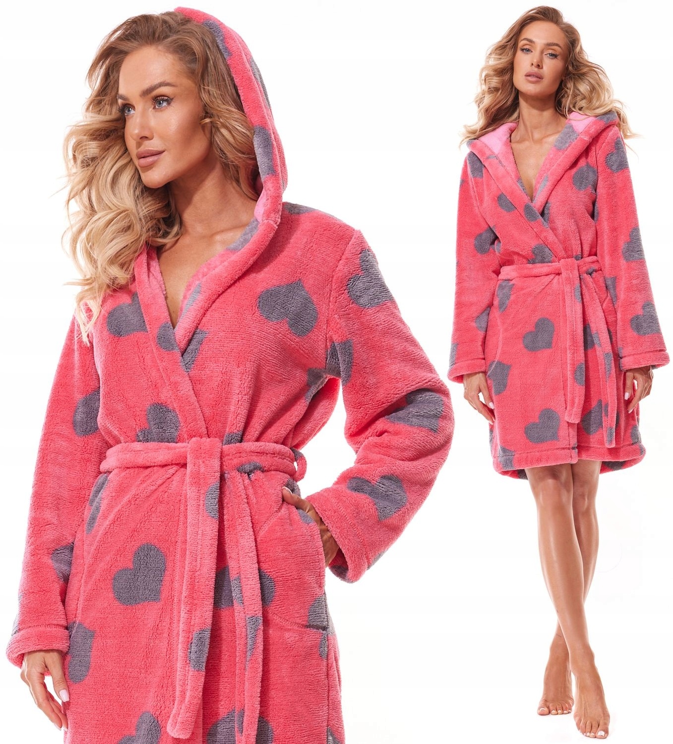 КОРОТКИЙ ЖІНОЧИЙ ХАЛАТ З КАПЮШОНОМ - СЕРДЕЧКИ - ROSE S