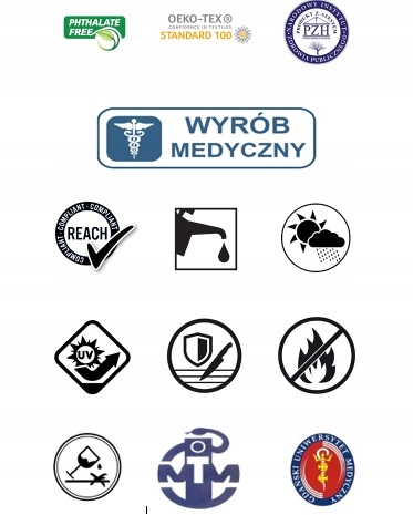 Реабілітаційне обладнання — медичний виріб відповідно до основних вимог до виробів медичного призначення та в розумінні Закону про медичні вироби, зареєстрований у Реєстрі медичних виробів, який веде Управління реєстрації лікарських засобів, виробів медичного призначення та біоцидних препаратів. , оснащений декларацією виробника про відповідність і має маркування CE.