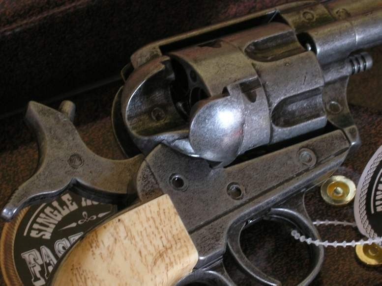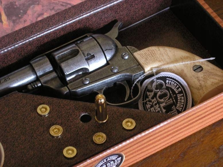 Набір містить декоративну коробку та копії 6 патронів, що відповідають Кольту. Гравірування на стовбурі: "SINGLE ACTION ARMY 45"