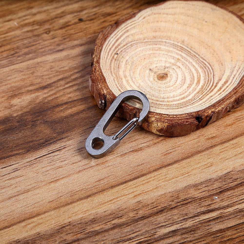 клавіші з карабіном виготовлений з титанового сплаву, стійкого до високої температури, світла та високої міцності. Дуже зручно взяти його з собою. Він широко використовується, його можна використовувати щодня, прикріплений до рюкзака, гаманця або використовується як ключове кільце.