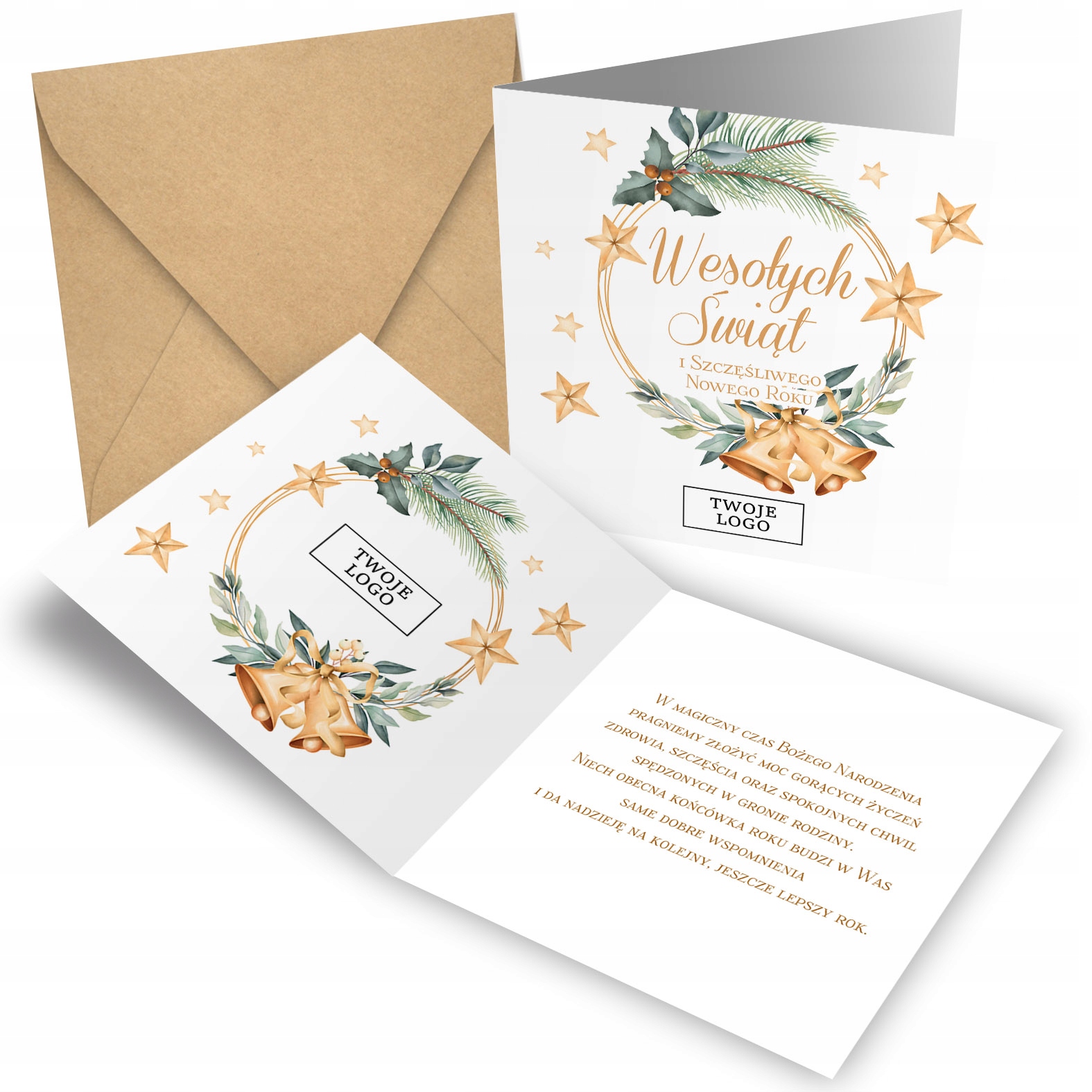 КОРПОРАТИВНА БІЗНЕС РІЗДВЯНА ЛИСТІВКА ВАШ ЛОГОТИП + КОНВЕРТ ВІНОК ПОДАРУНОК
