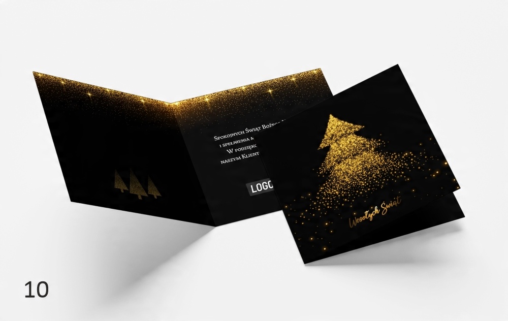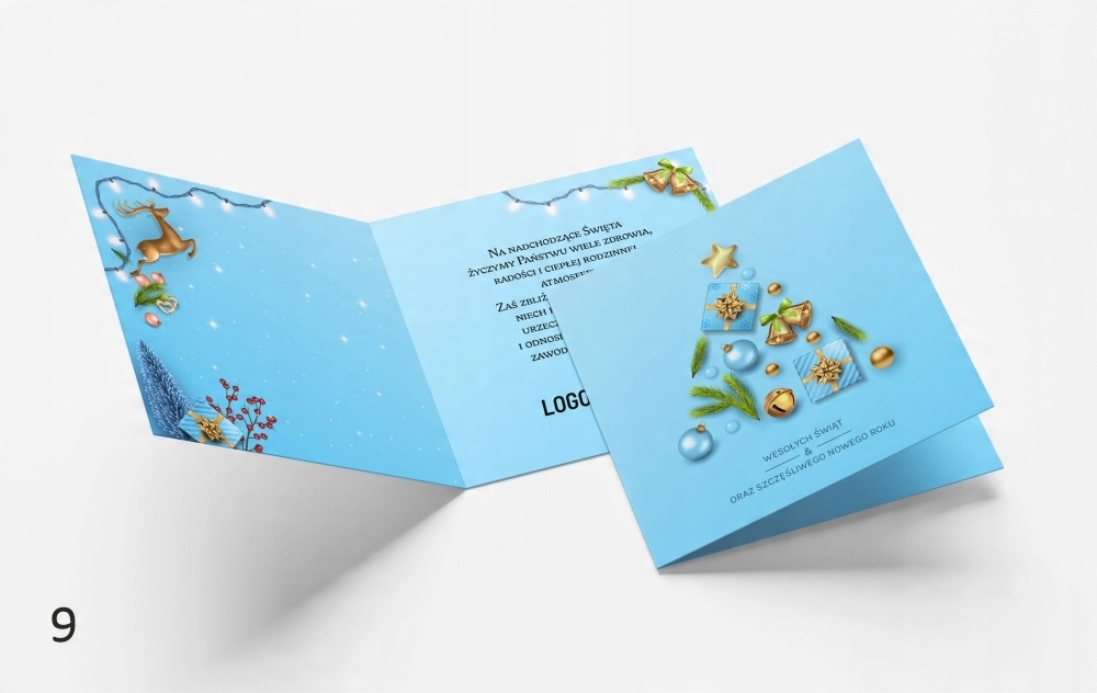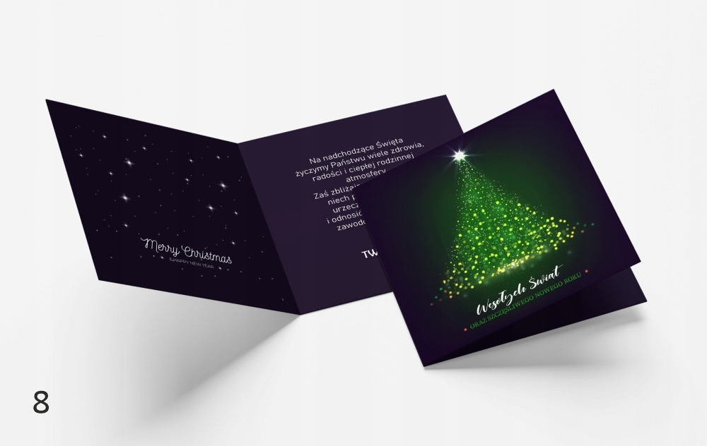 Новорічні листівки Snow Palace III виготовлені з білого паперу найвищої якості з кольоровим друком на обкладинці. На обкладинці красивий графічний мотив. У тексті побажань можуть бути всі ваші дані, також можливий друк ЛОГО під побажаннями безкоштовно. Друковані тексти можуть бути будь-якими, ви можете вибрати їх із наших зразків текстів або надіслати свій текст.