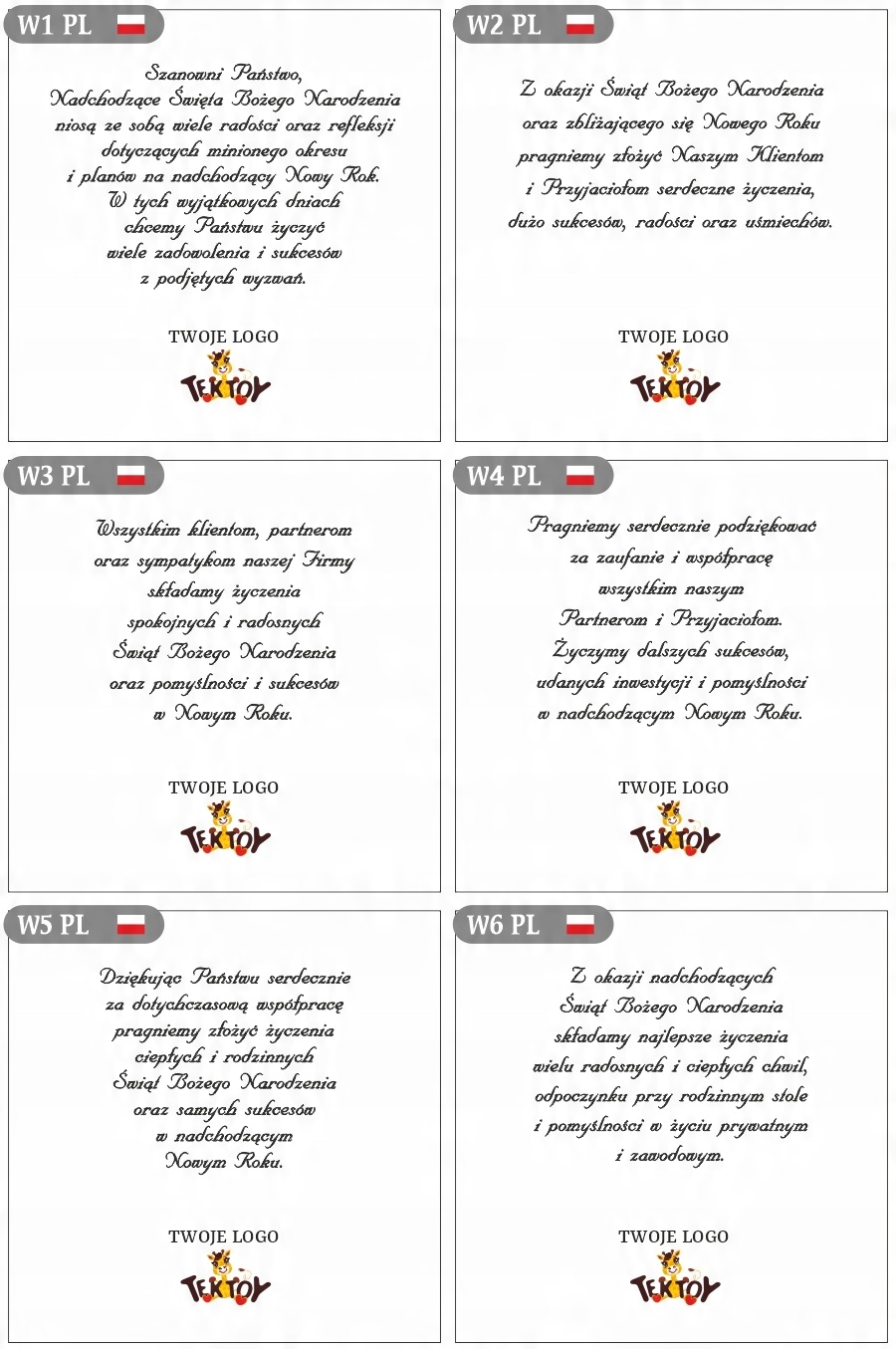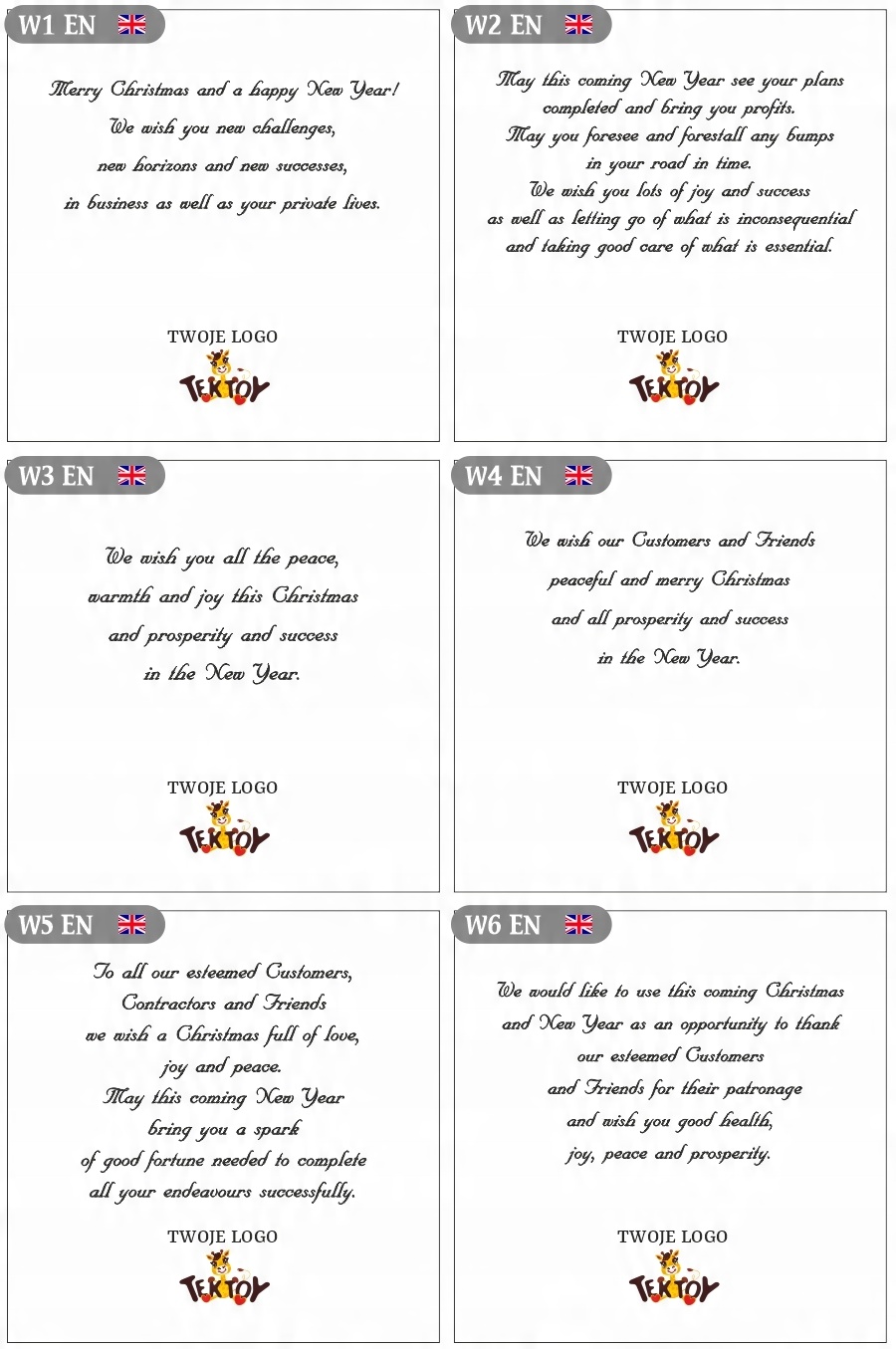 - В рамках замовлення ми виготовляємо тільки один тип листівок (з одним текстом побажань і однаковим логотипом). Якщо ви хочете замовити більше типів в одному замовленні (мовні версії чи інші логотипи), будь ласка, купіть відповідну кількість типів на нашому аукціоні під назвою: Додаткові опції для графічного дизайну карт Святого. - 15 злотих/шт