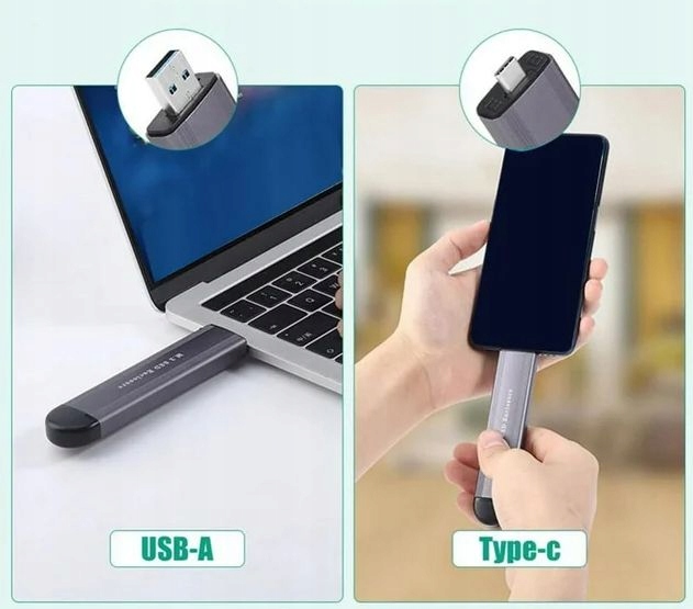 Твердотільний накопичувач 2-в-1 NVME PCIe M.2 USB і USB-C 3.2
