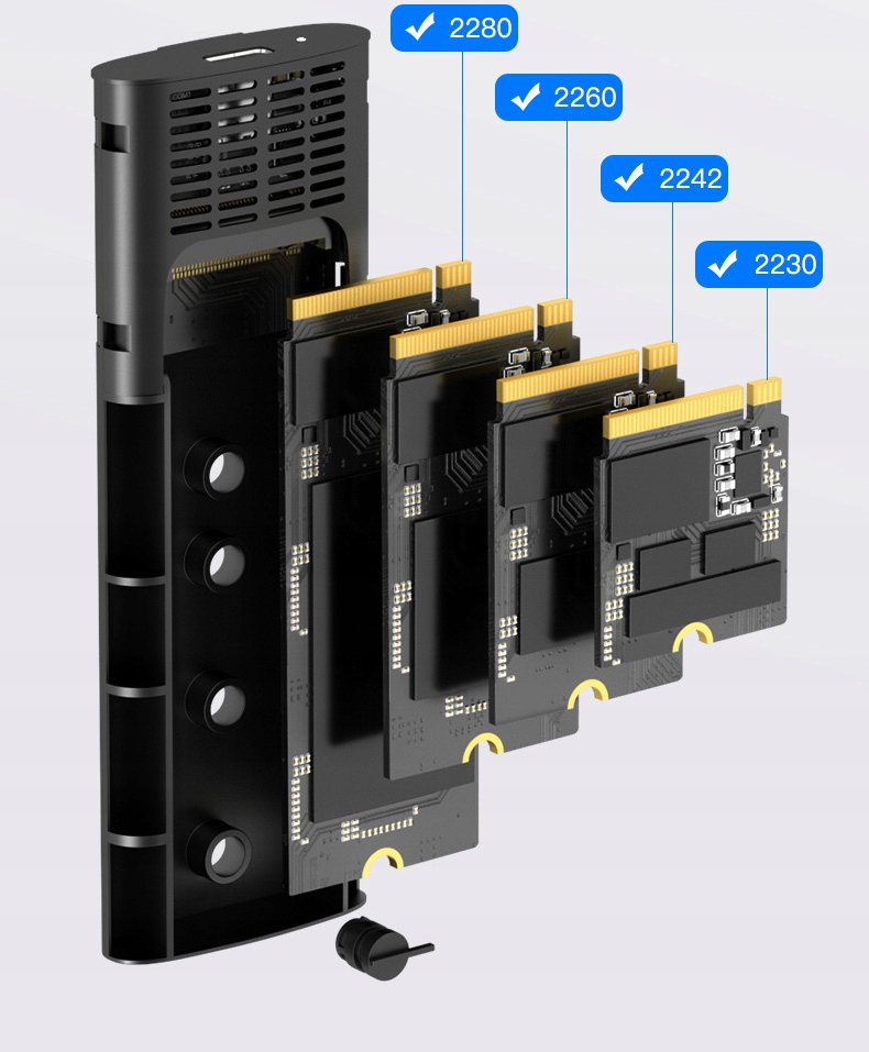Сумісність із M.2 NVMe/SATA M, B і M Key SSD.