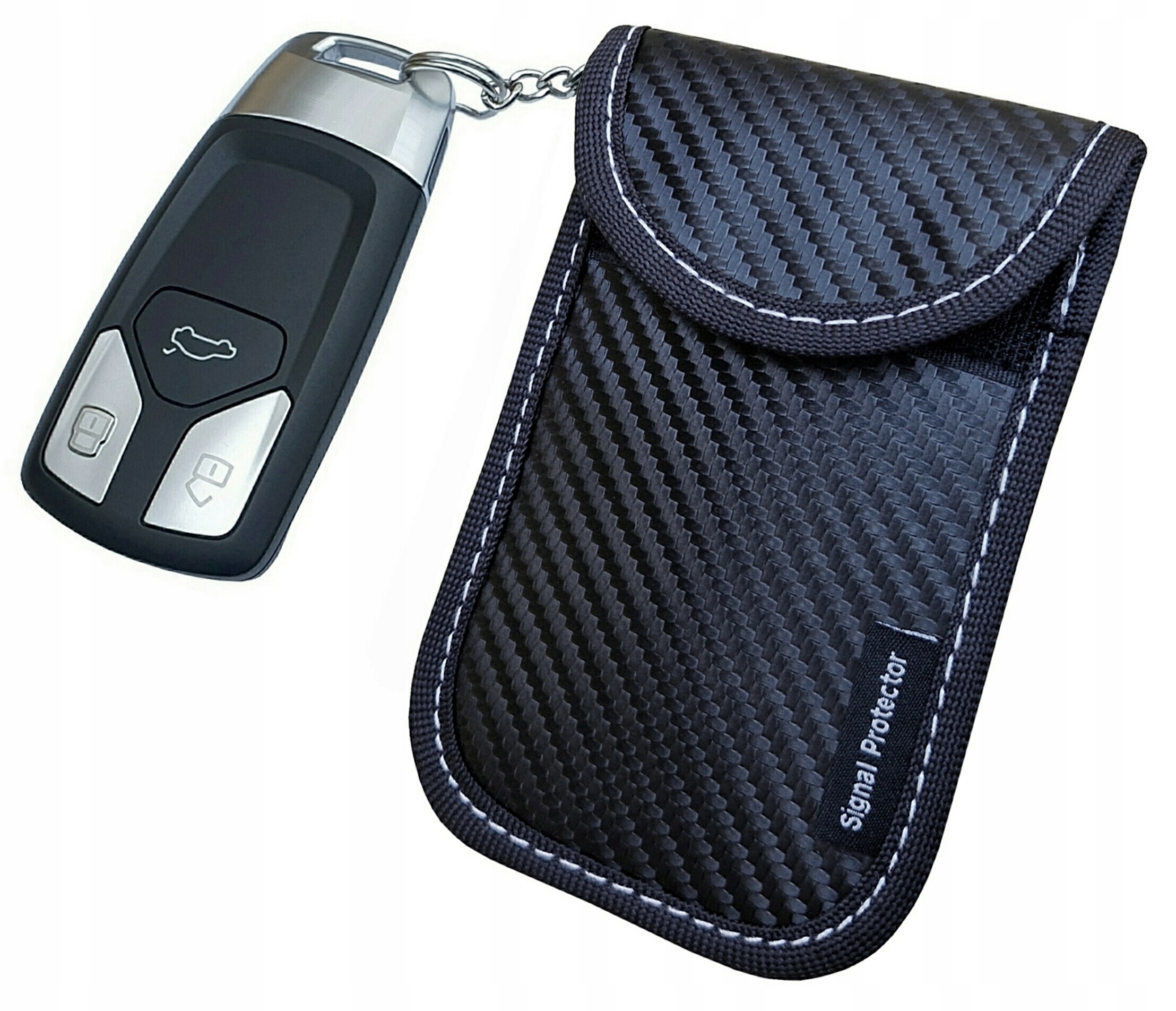Виріб працює за принципом клітини Фарадея. Після вставлення ключа в чохол сигнал блокуєтьсясертифікованим високоміцним матеріалом. Завдяки цьому потенційний злодій не перехопить сигнал вашого ключа.
