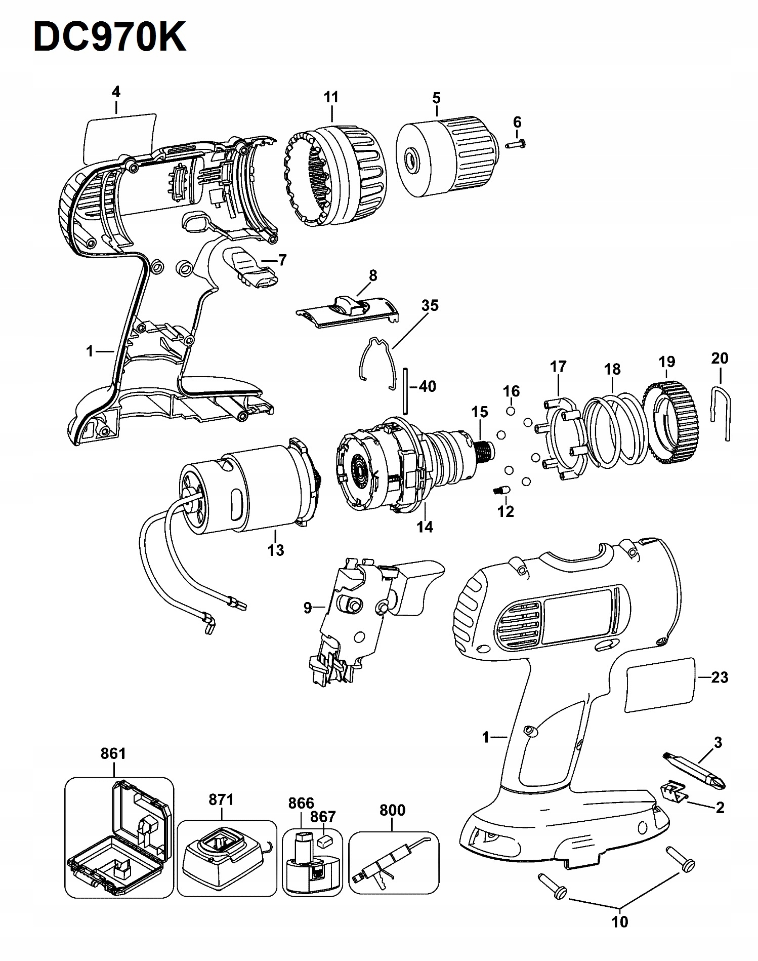 Корпус Dewalt для дриль-шуруповерта DC759KA DC970