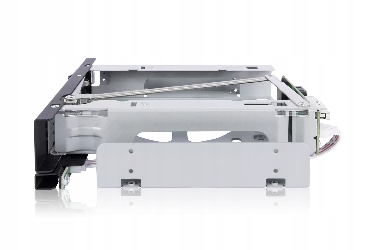 Вставлення 3,5-дюймового диска легко підтримується напрямним механізмом і двостороннім стабілізатором. Завдяки їм накопичувач підтримує стабільне з'єднання з внутрішнім роз'ємом SATA і захищений від пошкодження в разі удару по системі. Після вставлення дисковода цей механізм спрацьовує, направляючи дисковод безпосередньо в роз’єм. У свою чергу, розширити його так само просто, як натиснути кнопку. При натисканні важіль виштовхування обережно та безпечно виштовхне диск.