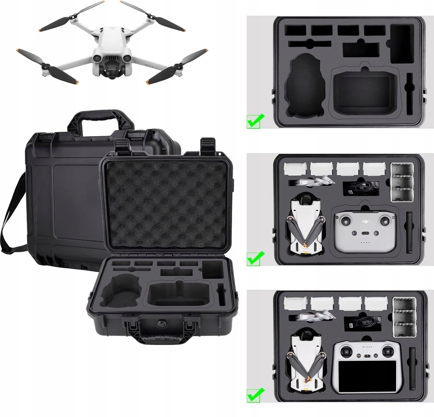 - Відмінна майстерність: водонепроникний, жорсткий корпус DJI Mini 3 Pro стандартний, оснащений клапаном компенсації тиску, розетки ідеально відповідають DJI Mini 3 Drone та Mini 3 аксесуарам, зручною та міцною ручкою, а крім того, два засувки дозволяють легко відкрити та закрити. Знімний ремінь на плечі пропонує два методи носіння для вашої зручності. Зручно для зберігання вдома або носіння на вулиці