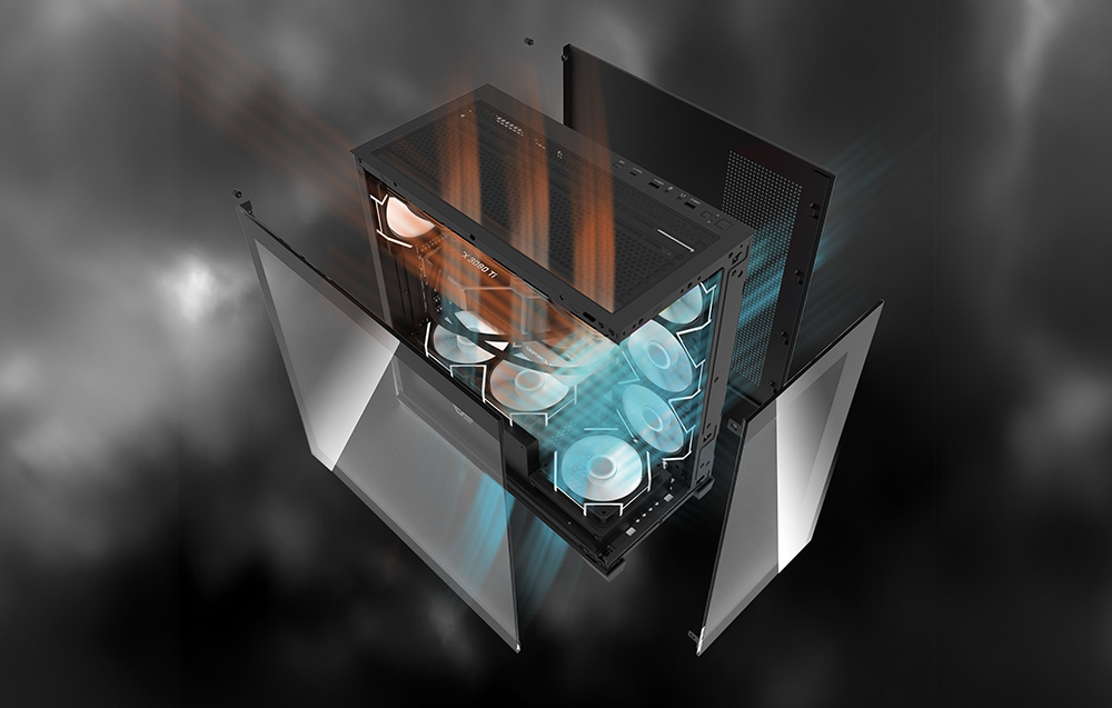 Кожному комп’ютеру потрібна хороша система охолодження, і DS900 безсумнівно її виконує. Можливість установки до 10 вентиляторів 120 мм і великого радіатора 360 мм робить корпус ідеальним для тих, хто очікує високої продуктивності та надійності, особливо під час інтенсивного використання.