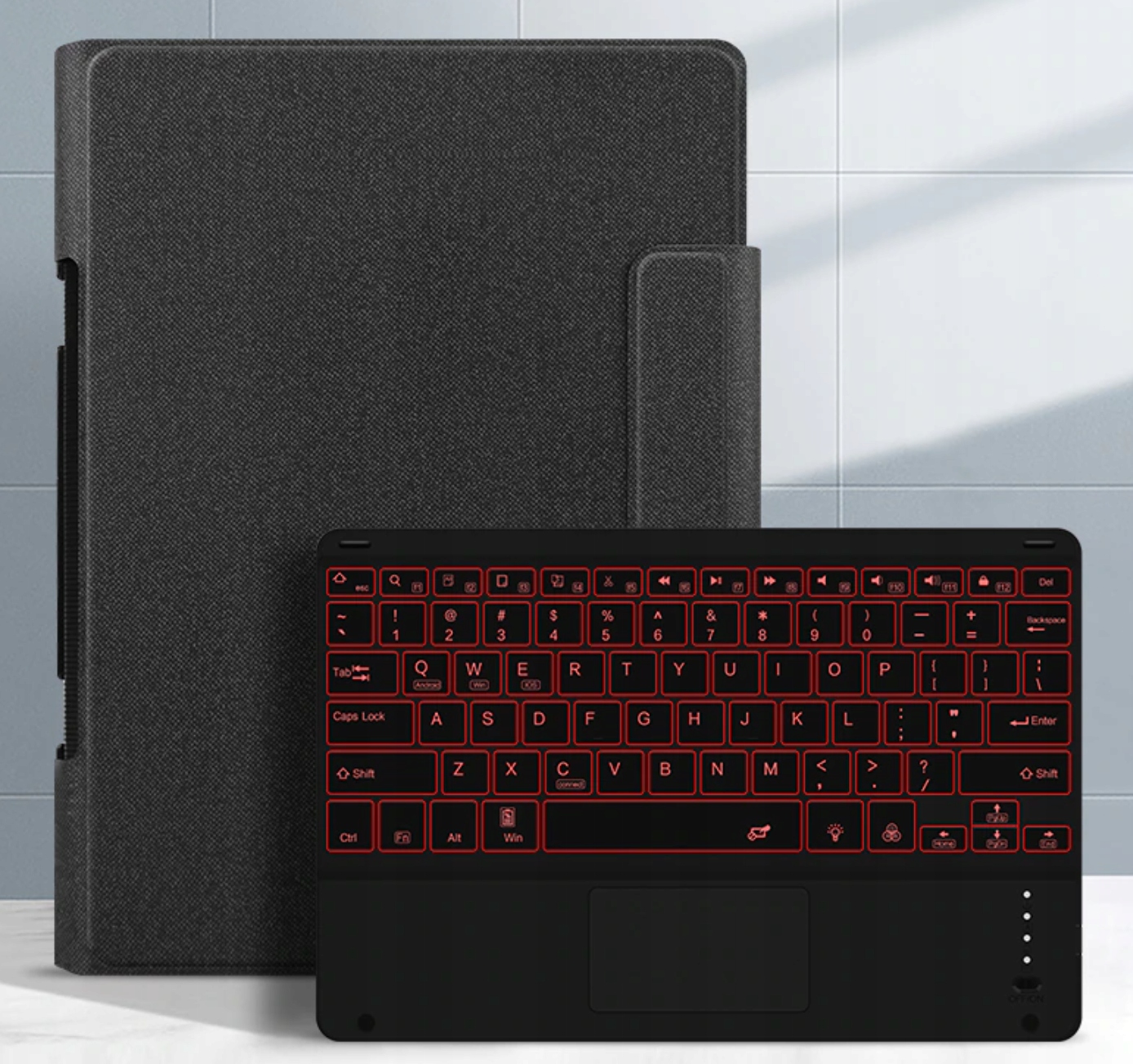 Клавіатура має вбудовану сенсорну панель, яка надзвичайно спрощує керування планшетом. (після підключення клавіатури до планшета, переміщення пальцем по сенсорній панелі, вказівник/курсор миші видно на екрані планшета)
