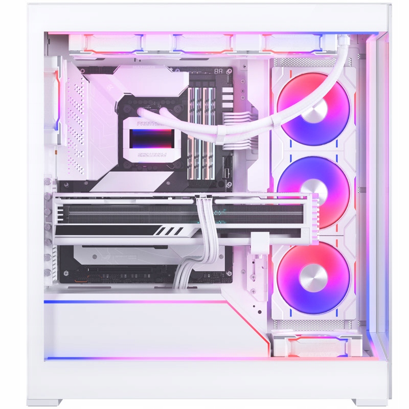 - Бічна та передня панель із загартованого скла для повного огляду апаратного забезпечення