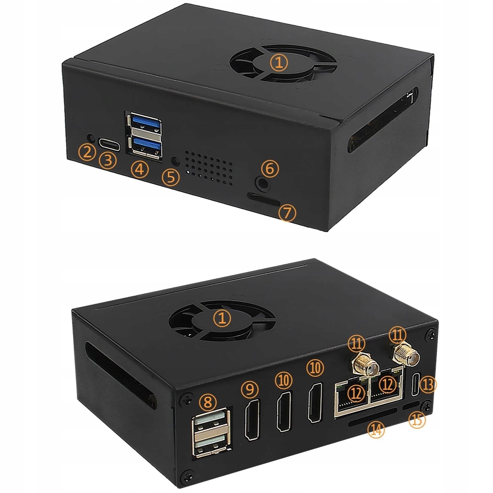 Корпус для мікрокомп'ютера Orange Pi 5 Plus, 4x вентилятор, 2x антена