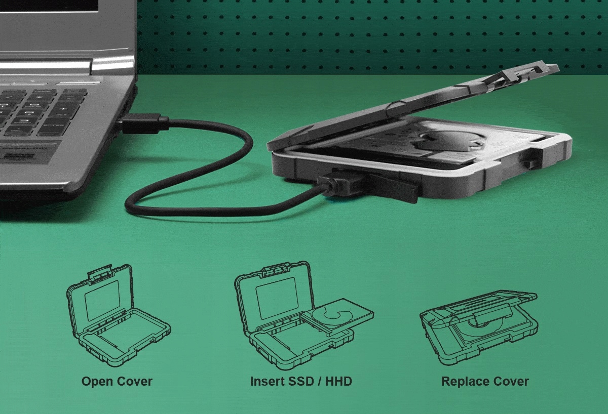Зовнішній корпус ED600 — це міцний і міцний корпус із силіконовою гумовою внутрішньою підкладкою для ударостійкості та рейтингом захисту від води та пилу IP54. Використовується в різних моделях HDD або SSD дисків розміром 2,5. Чохол ED600 сумісний з ноутбуками, ПК, PS4, XBOX One та іншими ігровими консолями. Встановлення без інструментів і перемикання одним дотиком забезпечують легкий доступ навіть для початківців користувачів комп'ютера. Корпус ED600 є обов’язковим для зовнішнього жорсткого диска/SSD для захисту ваших даних!