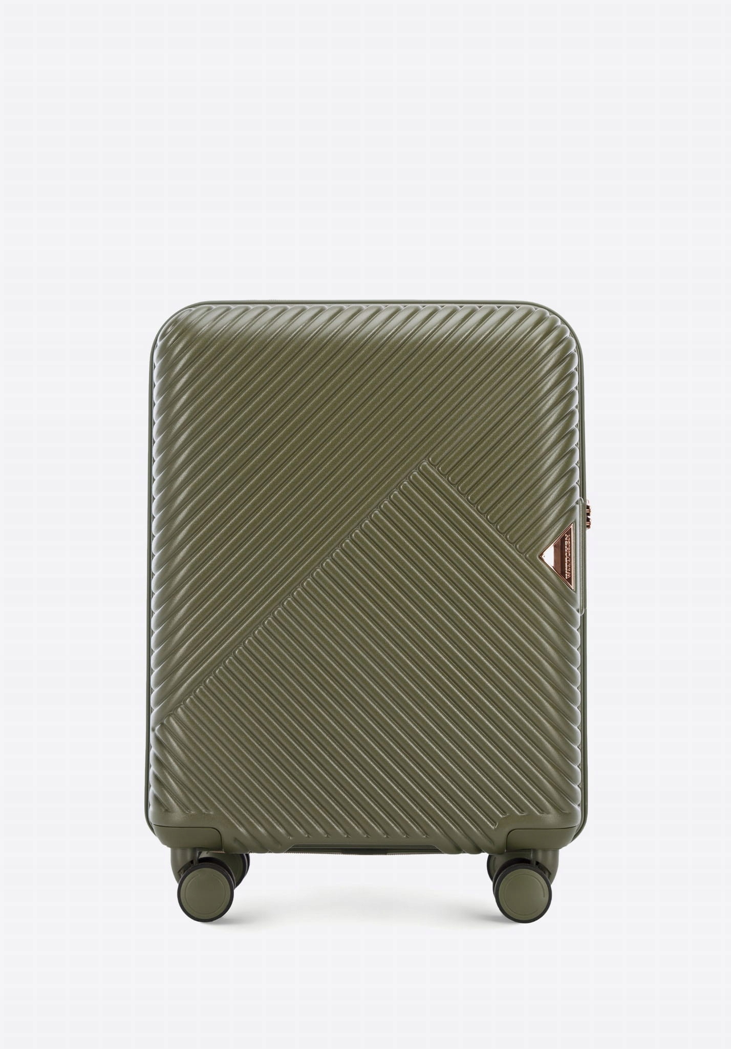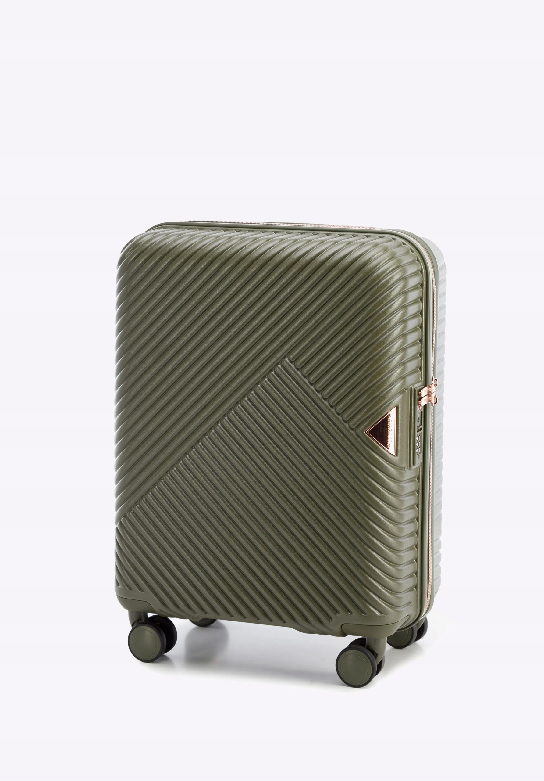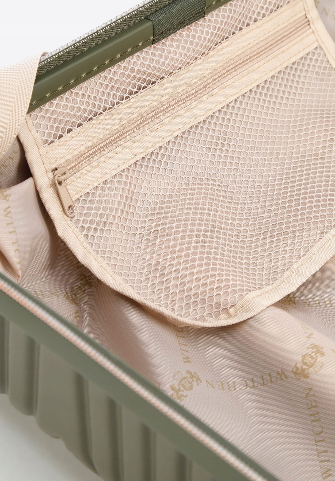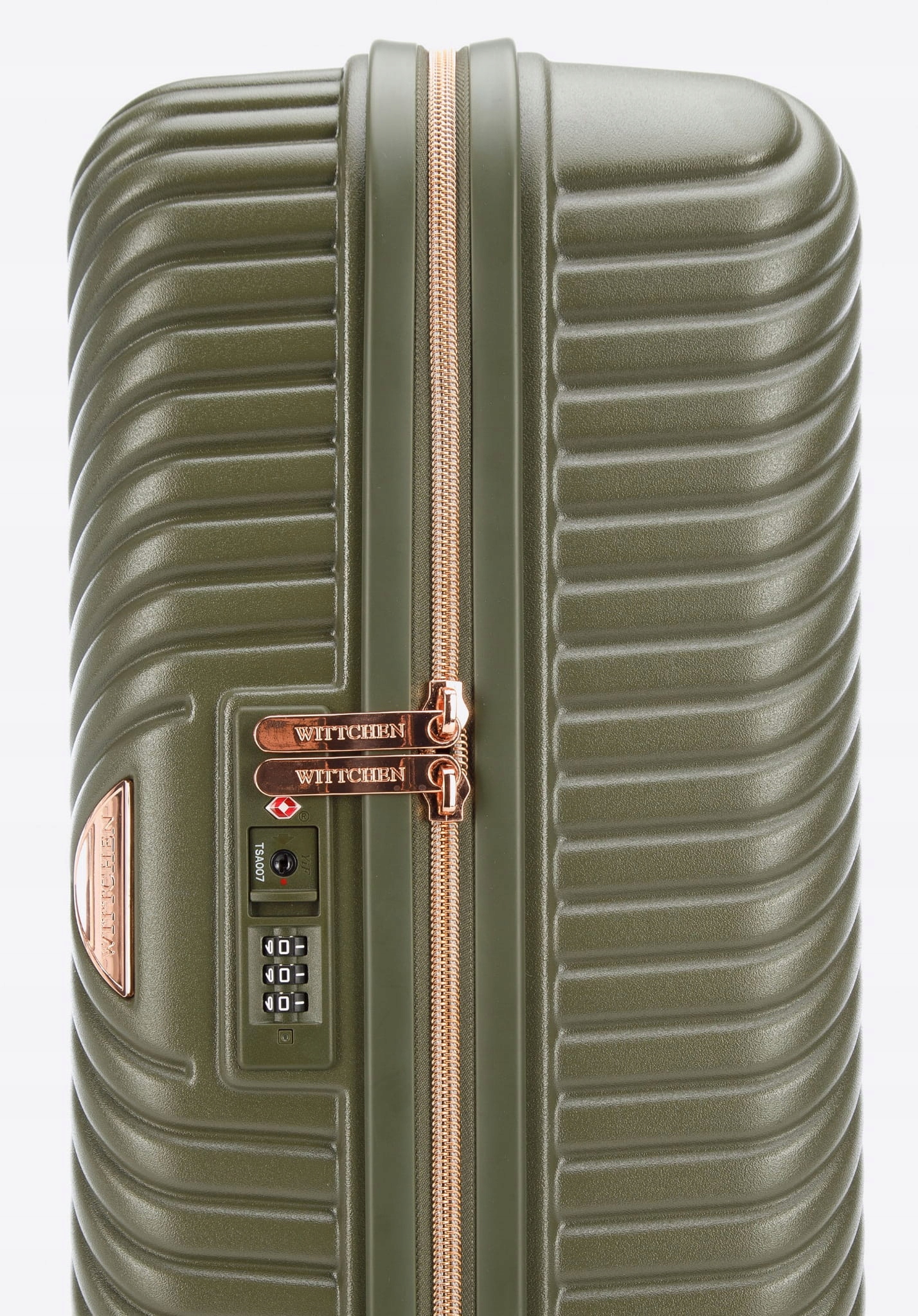 Валіза WITTCHEN 56-3P-841-85з колекції GL Style оливкового кольору, виготовлена з полікарбонату з матовим покриттям. Валіза відповідає вимогам ручної поклажі більшості бюджетних авіакомпаній (Easy Jet, LOT, Lufthansa, Wizz Air). Оснащений чотирма подвійними колесами, виготовленими з ABS-пластику і покритими термопластичним покриттям, алюмінієвою телескопічною ручкою з замком і гумовою гнучкою ручкою. Всередині є відділення з регульованими лямками для захисту багажу від переміщення, відділення, що закривається на блискавку, і 3 кишені на блискавці, в тому числі 2 сітчастих. Безпека у вигляді замка TSA є додатковою перевагою. Завдяки йому під час митного огляду багажу ми маємо гарантію неінвазивного відкриття валізи та її повторного закриття, без пошкодження замка. Завдяки невеликим розмірам валіза легка, але містка і практична.