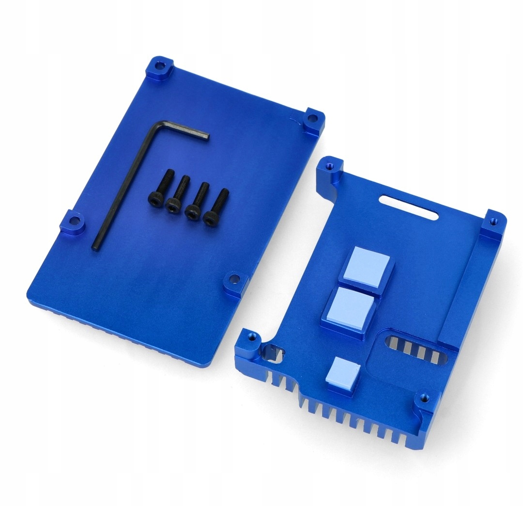 Корпус із міцного алюмінію, пофарбованого в синій колір. Дизайн корпусу присвячений міні-комп'ютеру Raspberry Pi 4B. Завдяки використанню міцного алюмінію, корпус ідеально захищає модуль мінікомп'ютера від механічних пошкоджень і електричних замикань. У набір також входять кріпильні гвинти, які дозволяють прикріпити корпус.