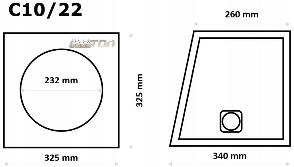 Закритий корпус сабвуфера BassTon C10/22-BY
