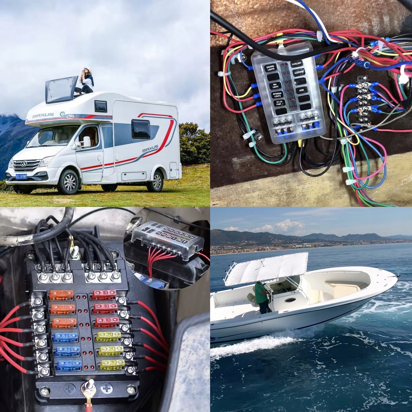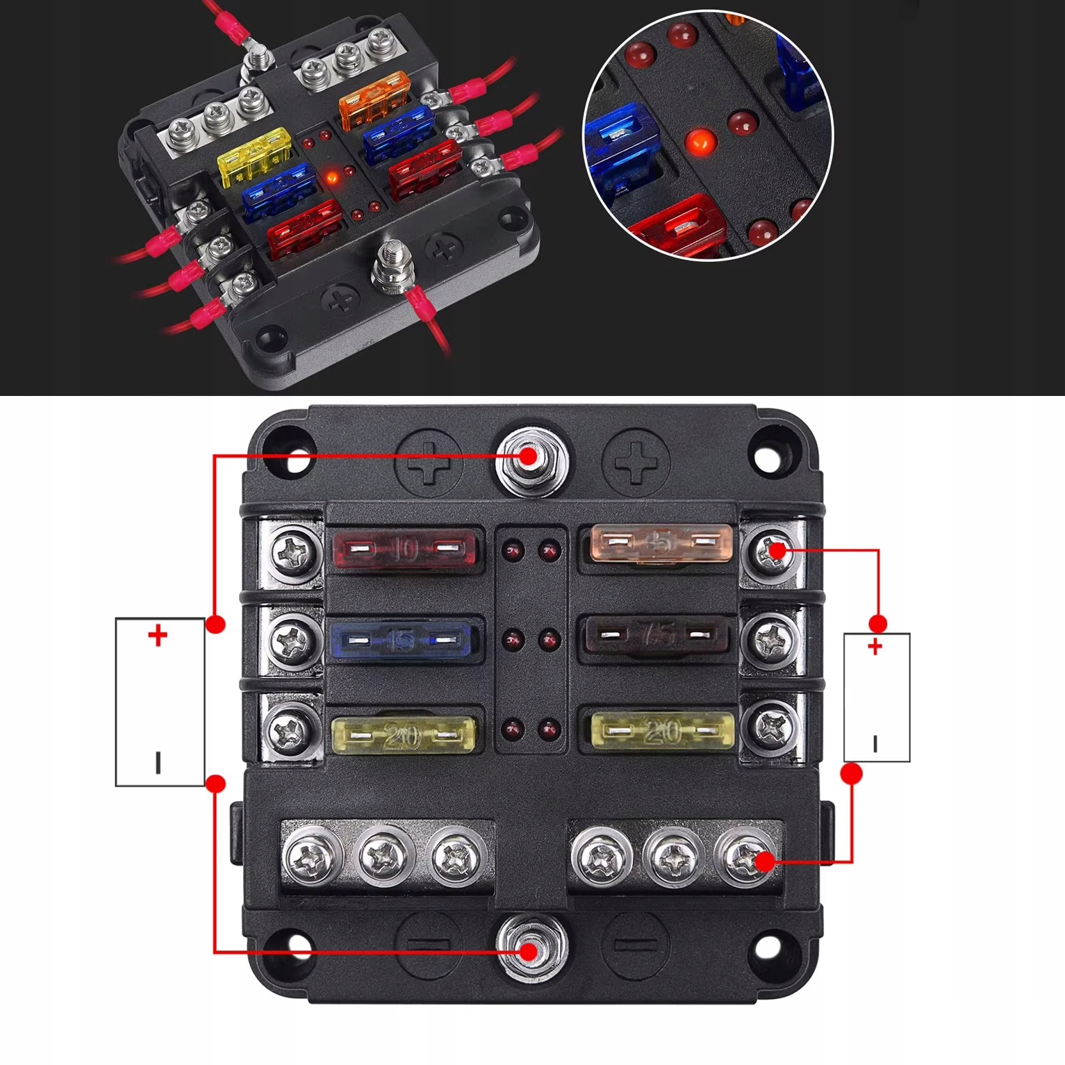 Сучасний і функціональний 6-контактний блок запобіжників - незамінне рішення для легкових, вантажних автомобілів, кемперів, човнів і мотоциклів. Оснащений світлодіодним індикатором, який негайно сигналізує про перегорання запобіжника, забезпечуючи безпеку, економію часу та зручність використання.